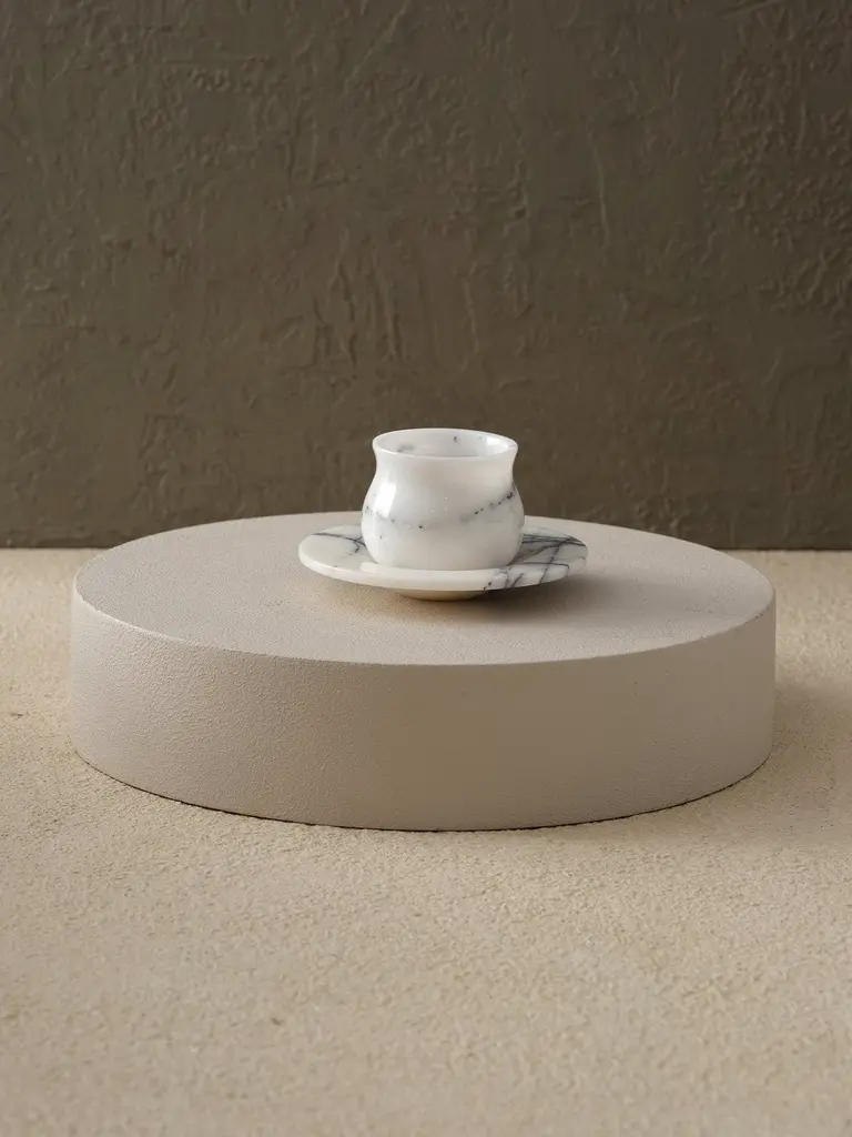 Minimalism meets timeless elegance in this espresso cup and saucer set, expertly carved from solid white marble with delicate natural veining. The curvaceous silhouette of the cup feels organic in the hand, while the smooth, rounded saucer completes the refined aesthetic. Whether you're starting your day or indulging in a quiet moment, this set brings a sense of calm and understated luxury to your coffee ritual. A beautiful fusion of function and form, it’s designed for those who appreciate material honesty and artisanal craftsmanship.
