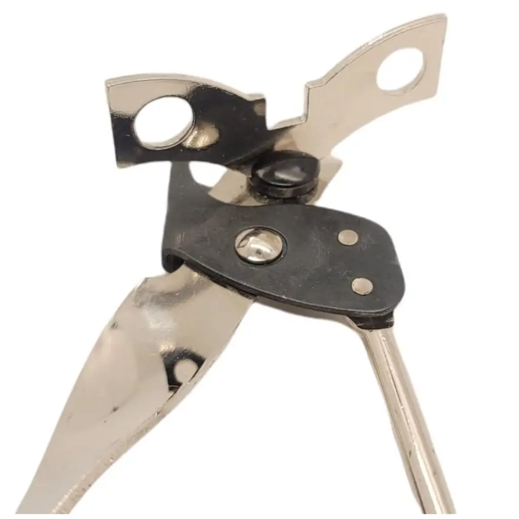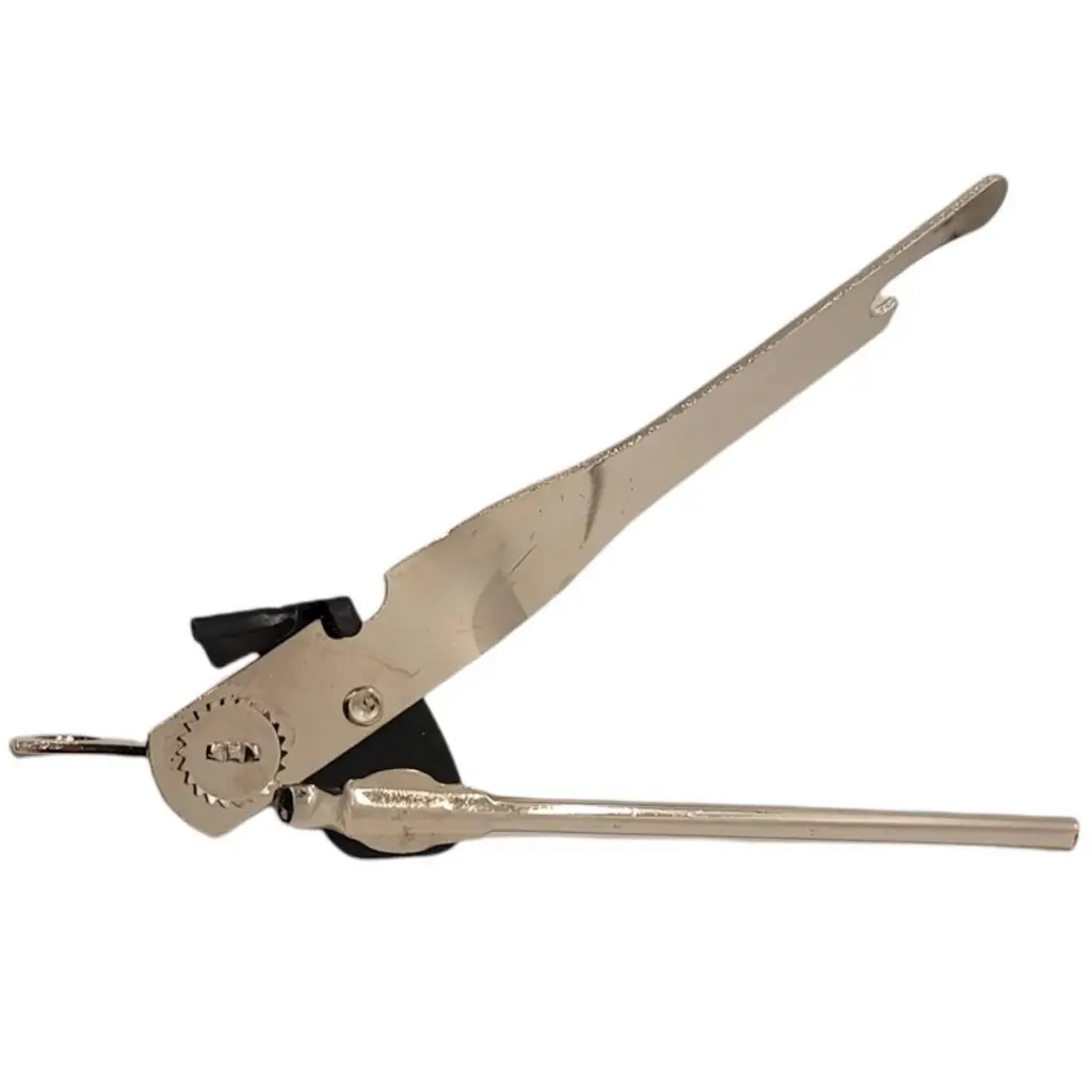 Ideal for both small and large cans, this easy to use Metal Can Opener is a kitchen essential made with strong, durable metal in a simple, classic design.Compact, lightweight design is great for the RV, camping or those looking to save on space. Includes a bottle cap opener on end of the handle.Measures approximately 6" long. Constructed from durable plated steel. Hand wash recommended.