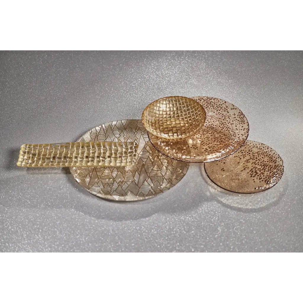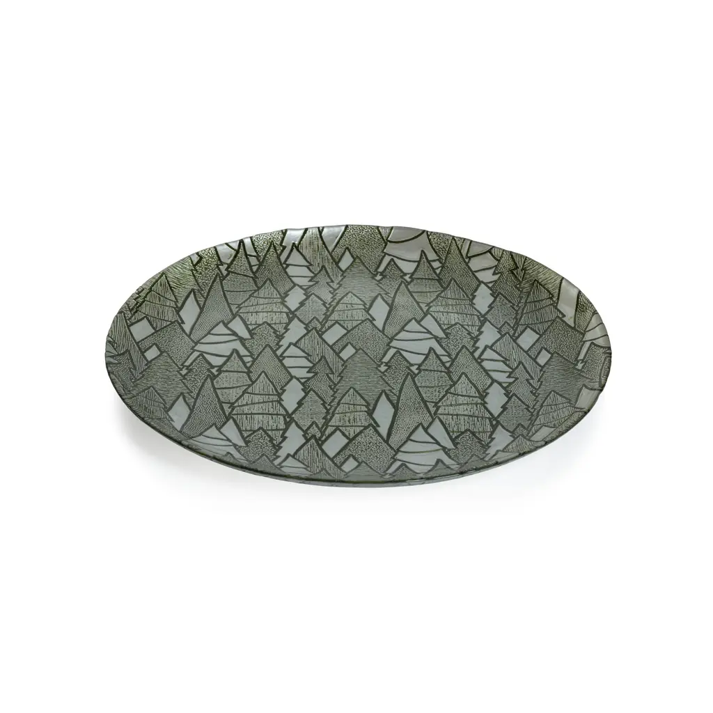 Innovative and unique, a timeless design suited for the modern home. Beautiful holiday glass platter with alpine tree print lends a classic accent to any setting. Its versatile design allows this piece to complement both traditional and modern decor. Perfect size for serving appetizers, holiday treats, or simply acting as a beautiful piece of holiday décor. Features: Set of 6 platters of the same color Decorative serving platter Evoke a sense of wintery charm Perfect for both function and display Hand wash only