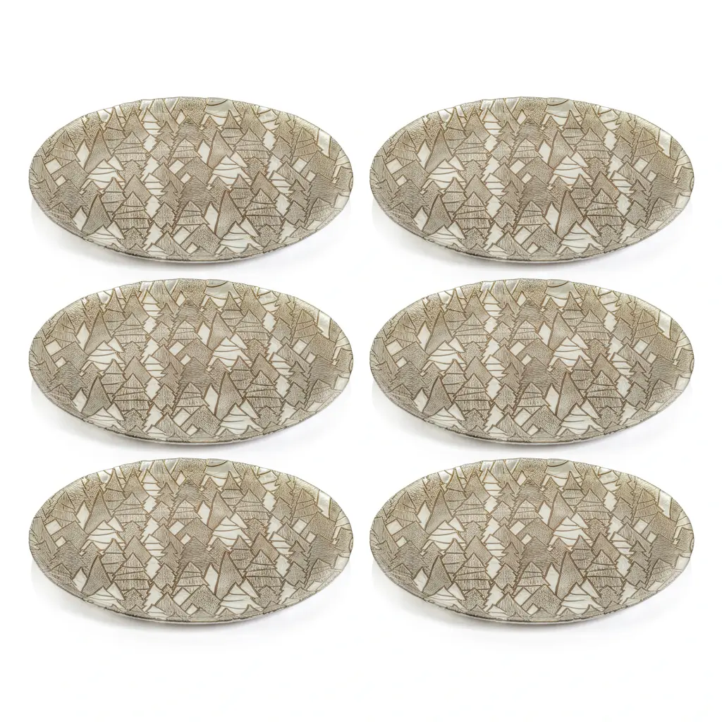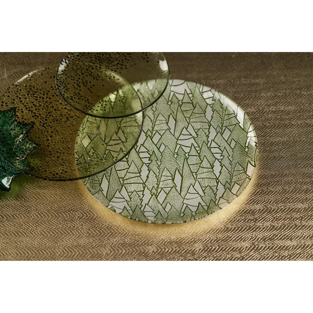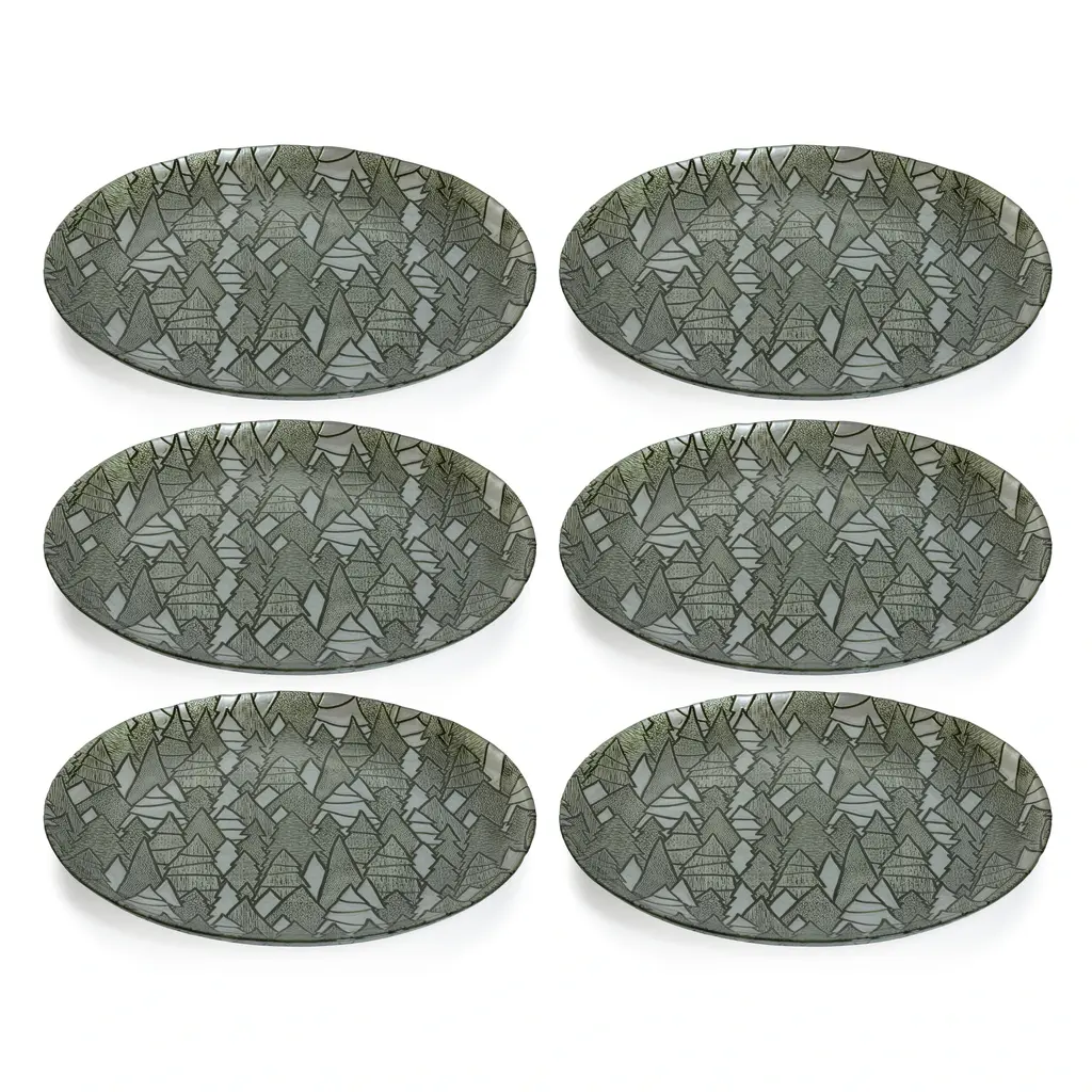 Hani 13" Alpine Tree Glass Platters, Set Of 6 - Green