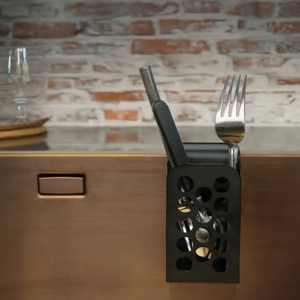 Happy Sinks' cutlery basket helps you tame the kitchen's chaos. The handy basket helps forks, knives and spoons to dry quickly and hygienically, instead of having to dry them in the cupboard or on the edge of the sink. Water drains directly into the sink so no more annoying little water droplets all over the kitchen! Made of stainless steel, the basket is designed for cutlery, but can also be used to dry extra sponges and cloths in the kitchen. The handy cutlery basket fits all sinks.