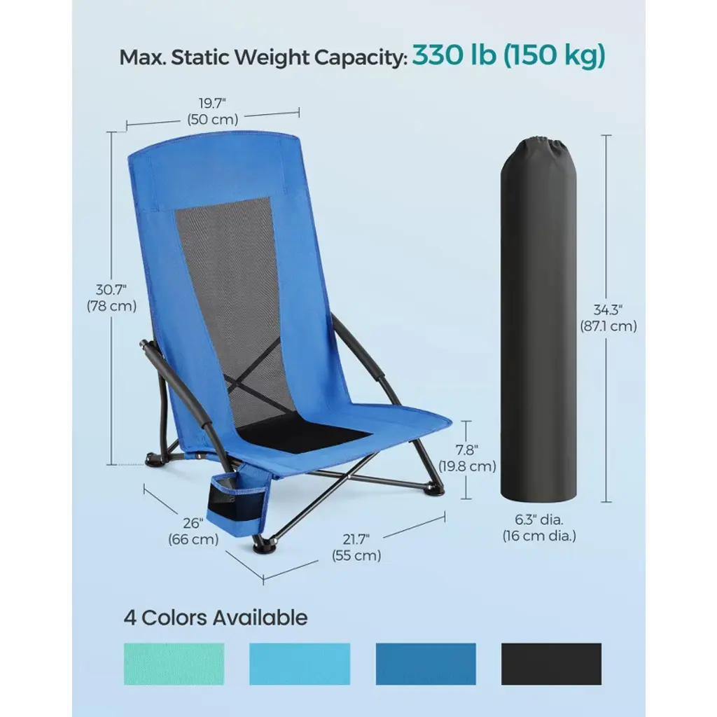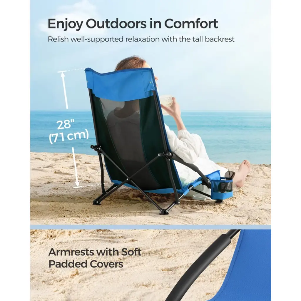 Harbor Blue Outdoor Camping Folding Chair - Features Cup Holder, Foam Padding, High Backrest. Foldable, 450 Lb Weight Capacity£¬for Beach & Sports