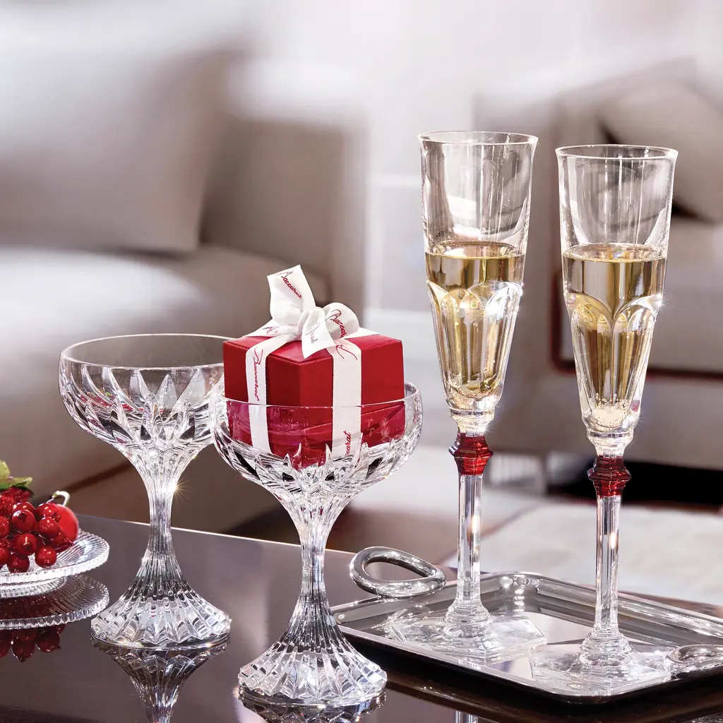 Harcourt 1841 Coupe Glasses With Red Knob, Set Of 2