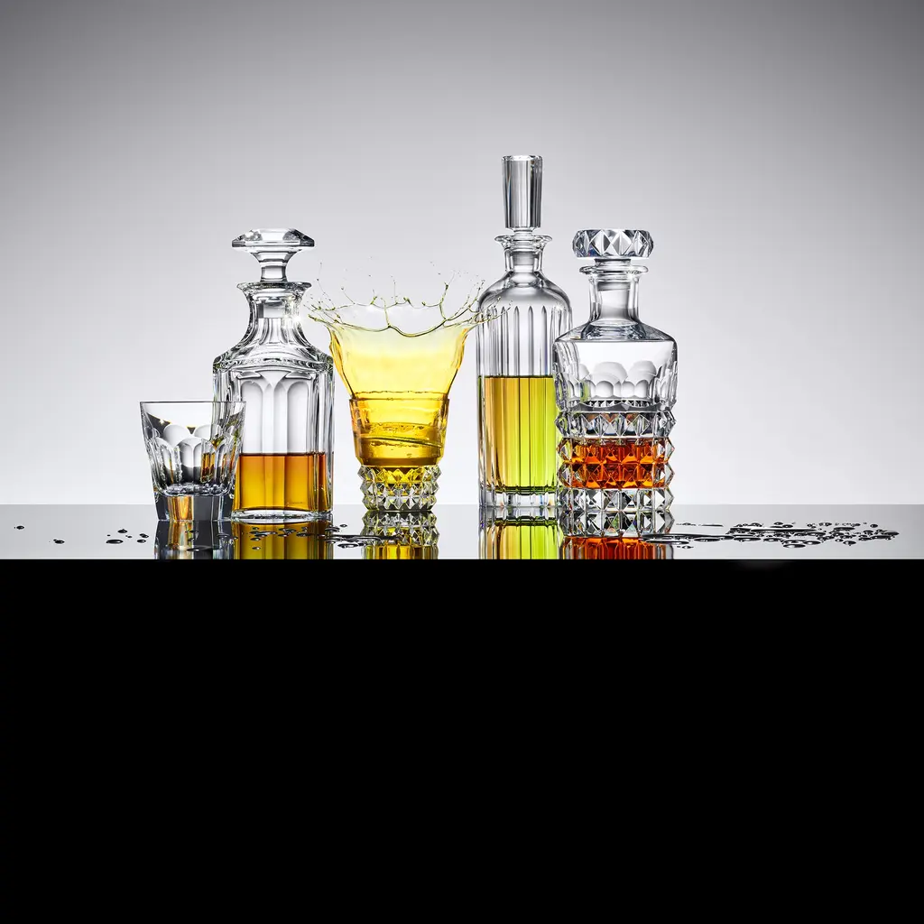 The Harmonie square whiskey decanter in clear crystal stands like a crystal column, at once understated and elegant. The classic shape with delicate engraved lines creates a play on texture that produces a stunning effect.