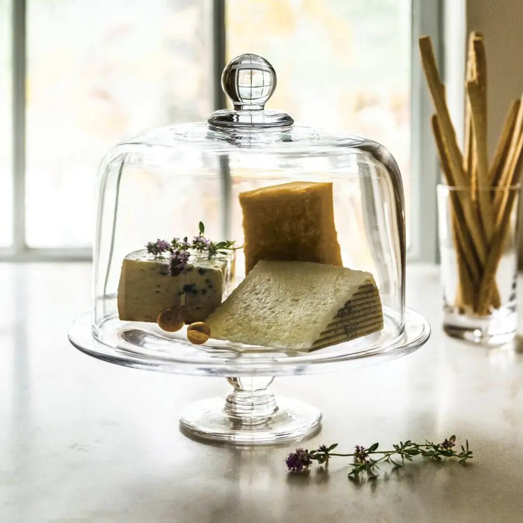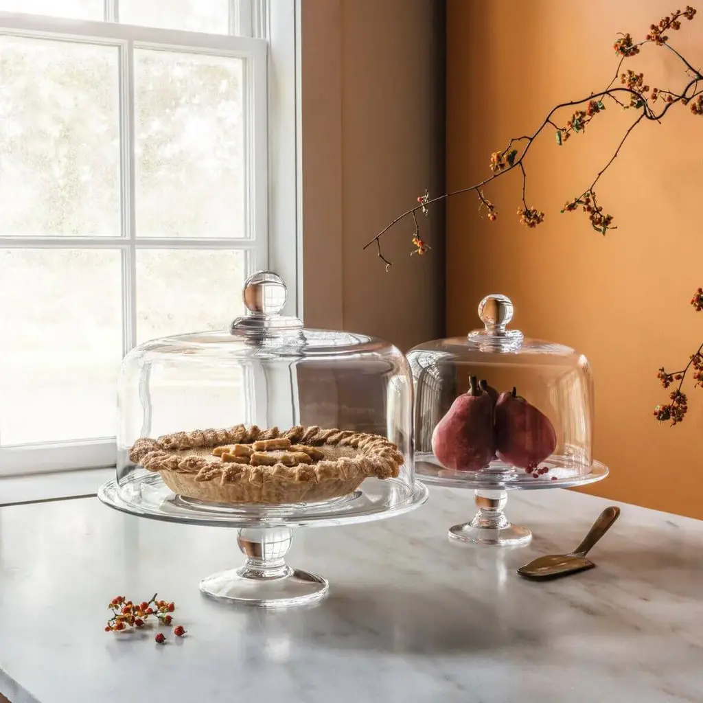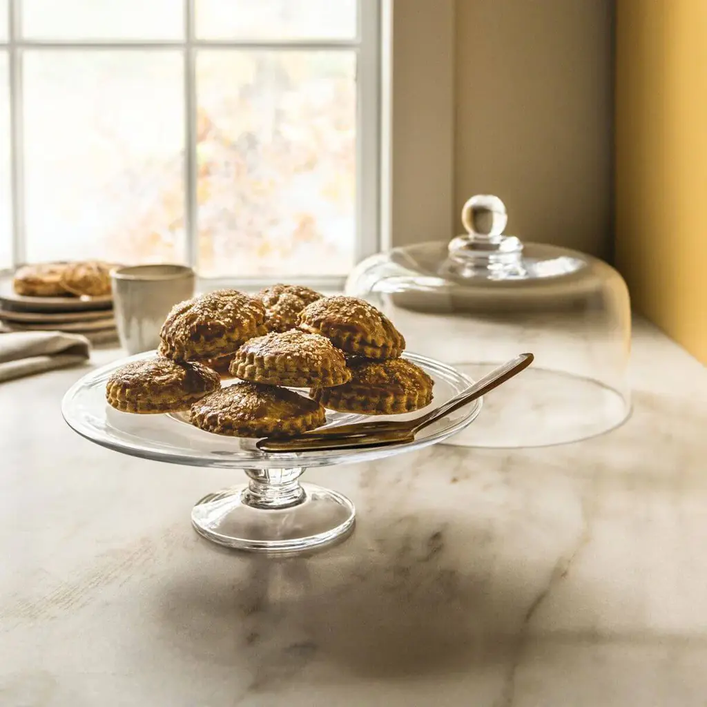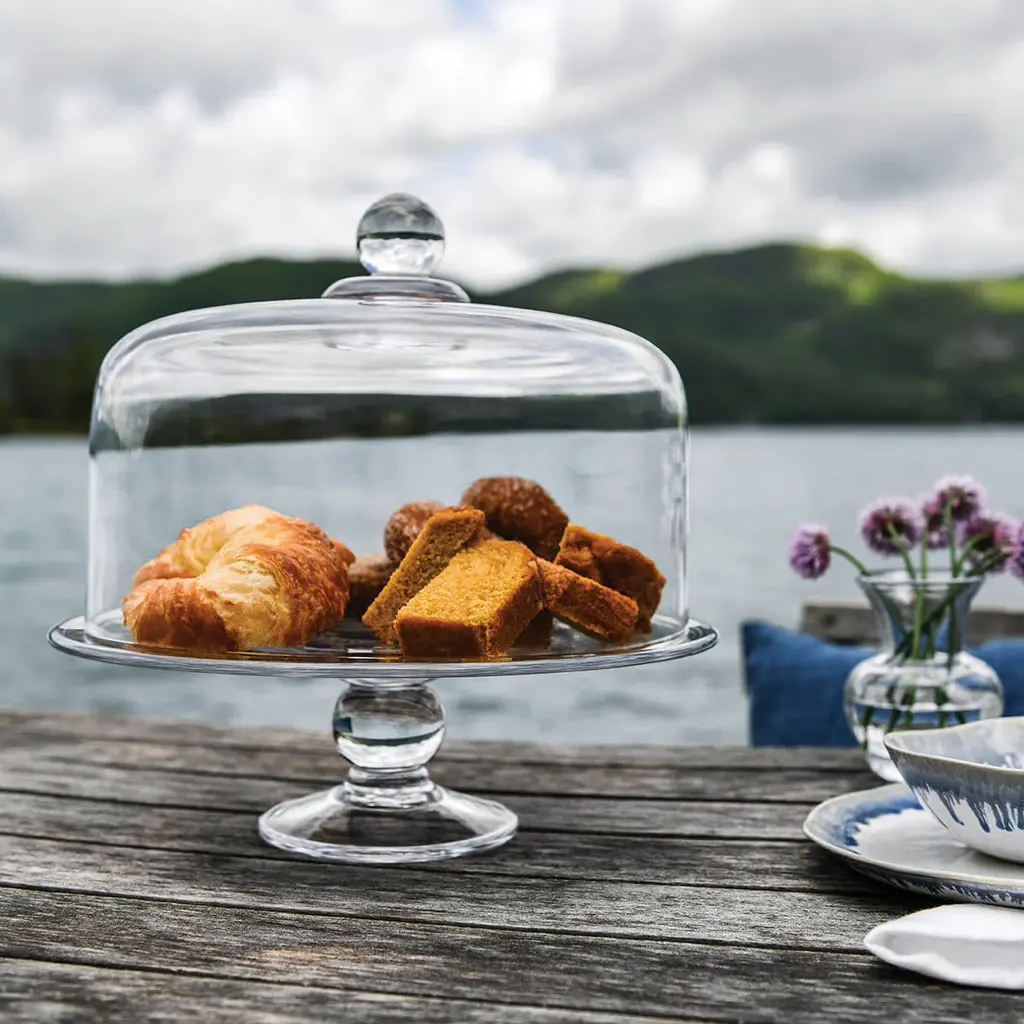 Elevate your hosting game with the Hartland Cakeplate from Simon Pearce. Perfect for dainty desserts and beautiful brunch spreads, this scaled-down version of the original cake plate is made by master glassblowers for an artisan touch. Complete with a classic dome, it makes a sophisticated wedding or shower gift. Highlights