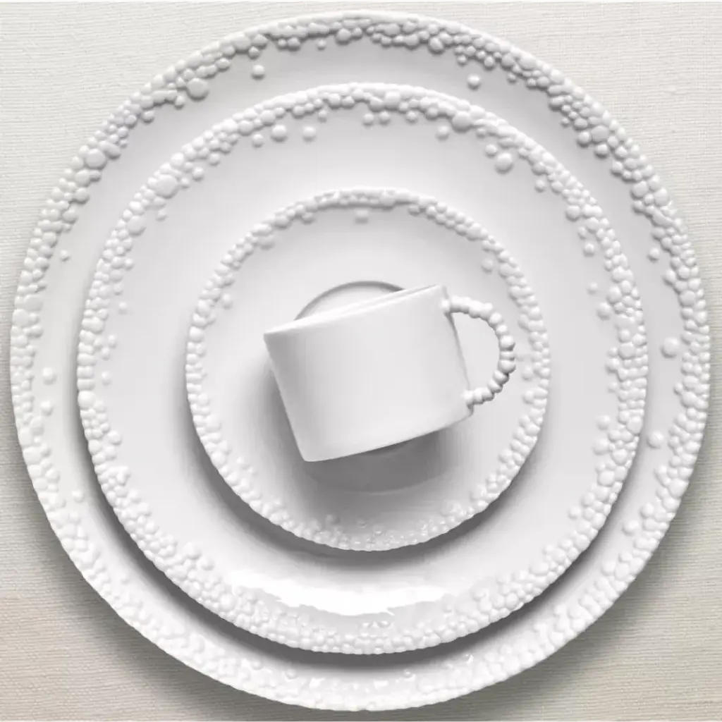 The L’OBJET Haas Brothers collection is a meeting of imaginative minds and skilled hands. Inspired by the otherworldly landscape of Joshua Tree, Los Angeles-based artists Simon and Nikolai Haas worked in close collaboration with the master craftsmen at L’OBJET to create a collection that spans tableware, home décor, textiles and fragrance. Together, they have brought to life a family of characterful creatures with the highest quality of finish and function. These are objects to be cherished. In using them, everyday moments become memorable; the ordinary becomes extraordinary. The Haas Mojave Dinnerware collection features an intricate and organic pattern reminiscent of desert pebbles and of the endless stars in the desert sky. Chargers are available in an impactful wide rim design and a subtler regular-width rim design to provide versatility. Available in white and gold. Prior to founding L’Objet in 2004, Israeli-born Elad Yifrach was a successful designer in Beverly Hills. He was creating beautiful interiors, but he was frustrated by the limited options available in home accessories, so he set out to create something better. L’Objet’s collections are diverse, but they are almost always inspired by nature and architecture. Many of his exquisite serving pieces rest in a base of hand-crafted gold foliage, other pieces feature intricate design and beadwork, and some of the most striking objects actually look like miniature buildings. And despite the lux feel, much of the line is practical with just a touch of whimsy.
