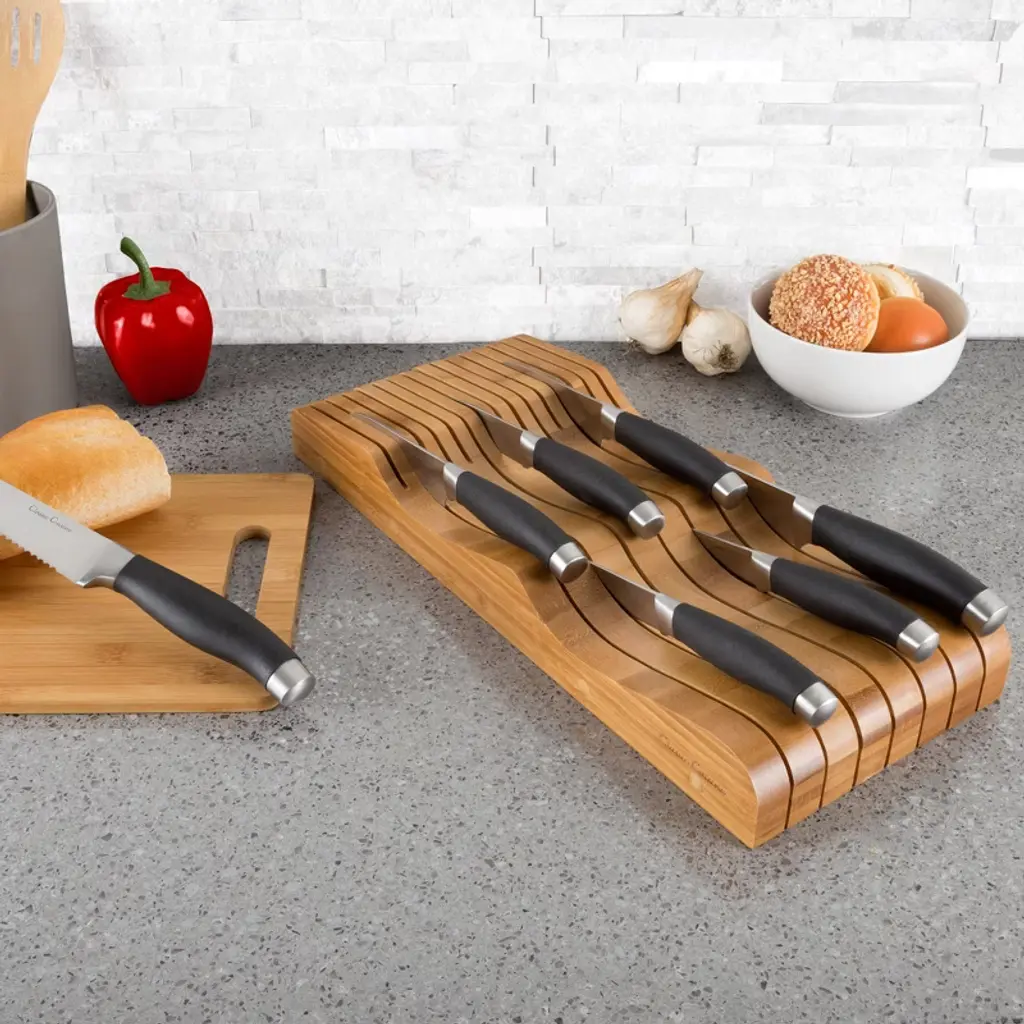 The Hastings Home In-Drawer Knife Block is made of durable, Eco-friendly, bacteria resistant bamboo and will help to protect your blades, extend the life of your knives and provide a safe and organized way to store your cutlery. IMPORTANT: Avoid buying counterfeit products and transacting with unauthorized sellers. Look for our logo on the packaging for every one of our products. Hastings Home is committed to providing the consumer with the absolute best price and value on our entire line of products, which we ensure by applying a rigorous Quality Control process.