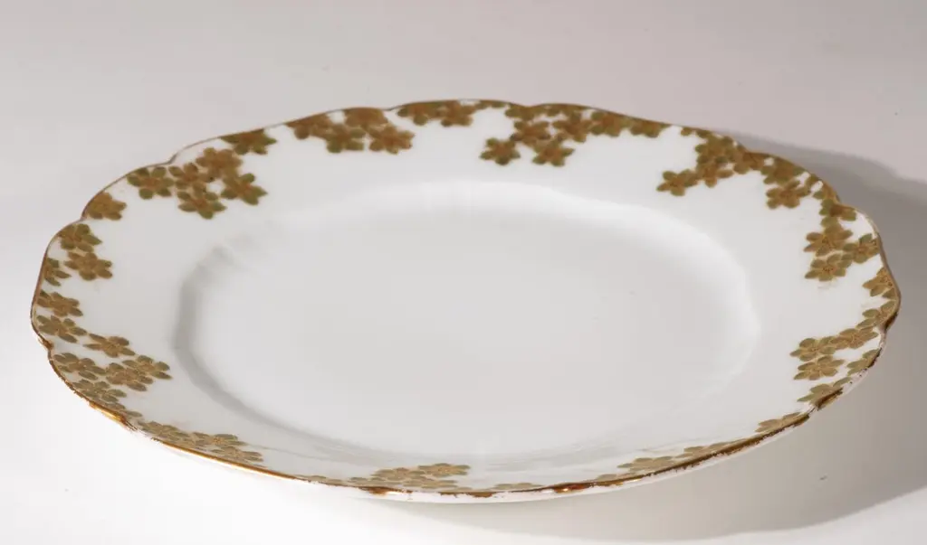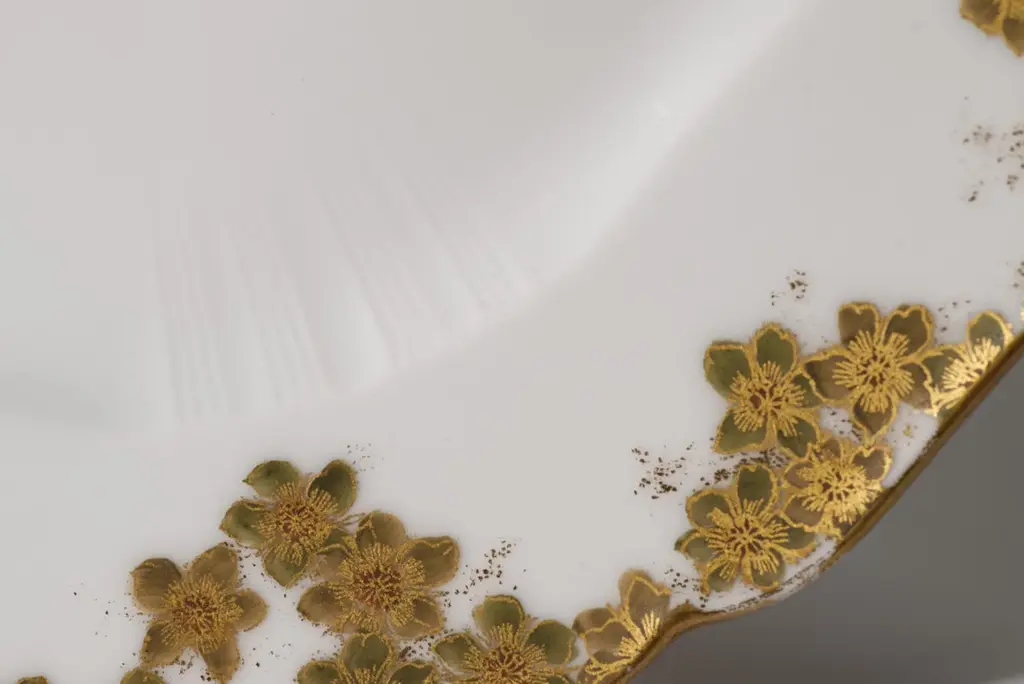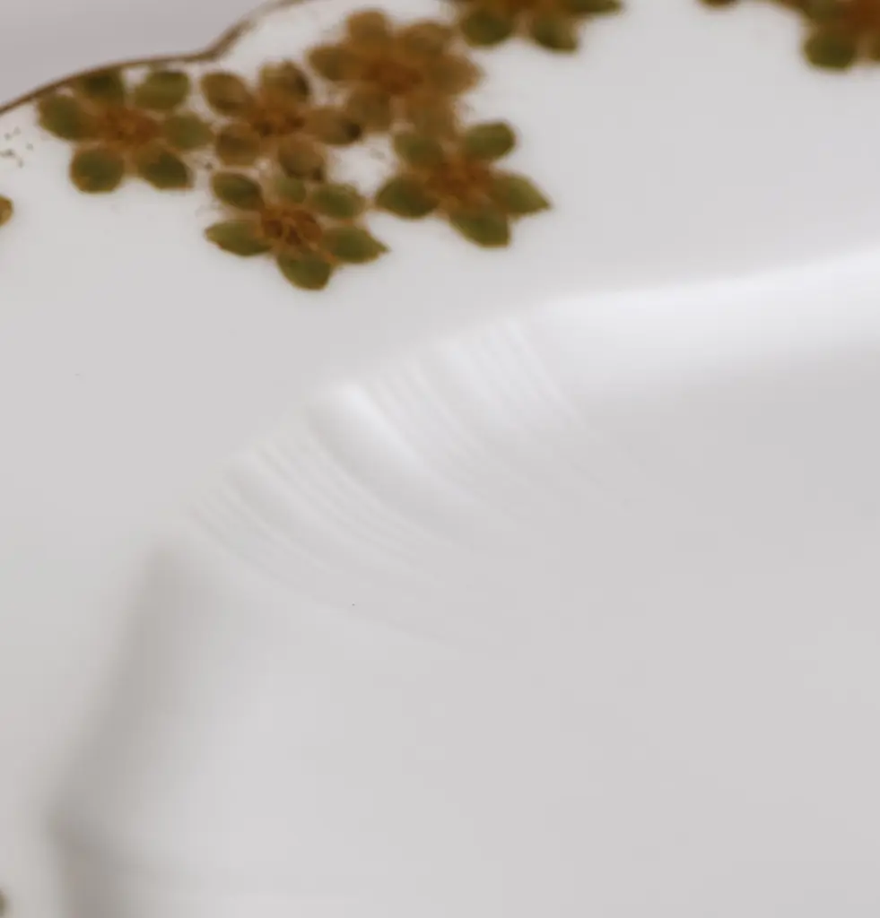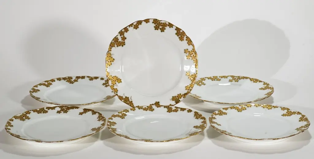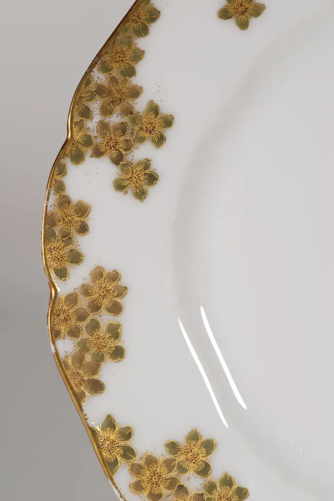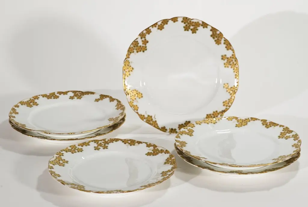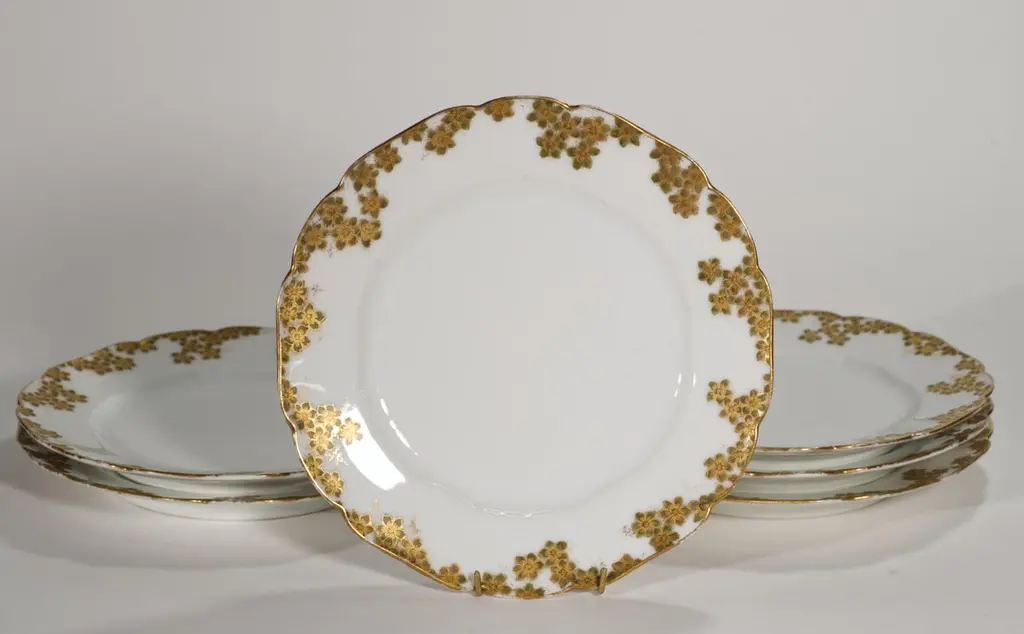 Haviland Limoges Set Of 6 Porcelain Plates With Flower Decor Gold And Moss Green