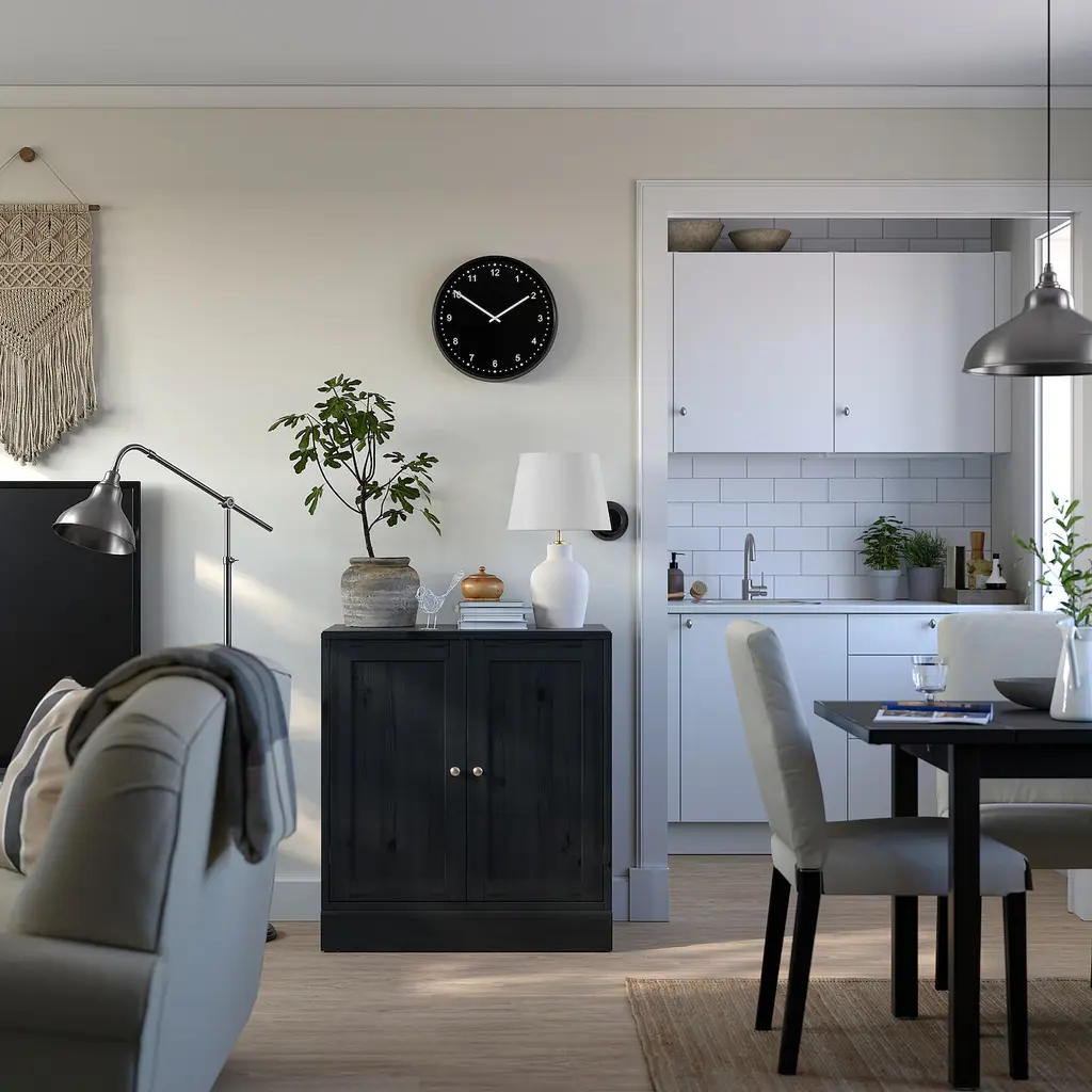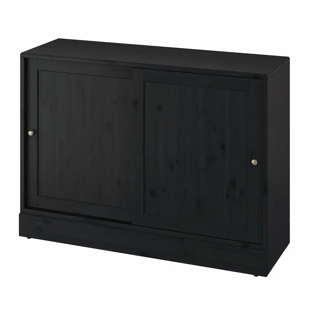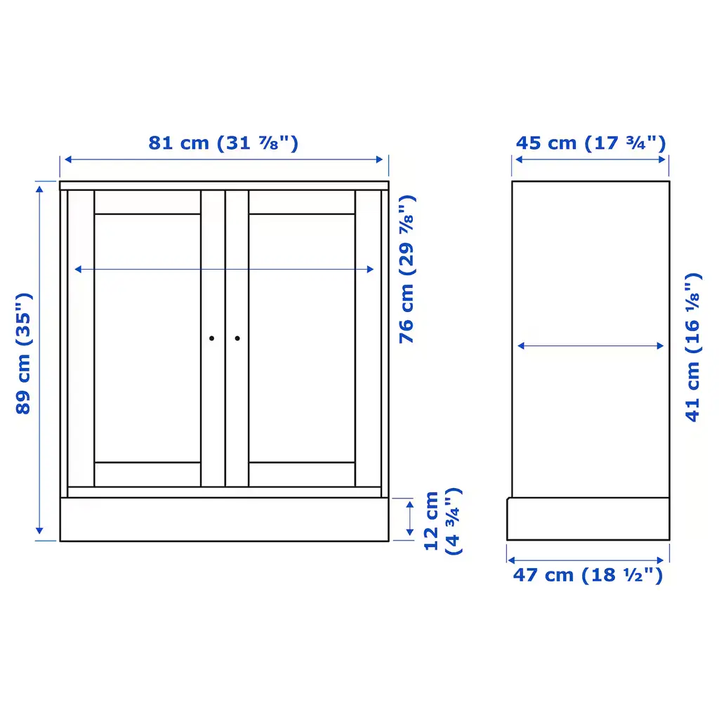HAVSTA Cabinet with base - black 31 7/8x18 1/2x35 ". Solid pine is a timeless material with natural variations that make each piece of furniture unique. You can choose to use the cabinet on its own or as a base to create a vertical combination. Two people are needed to assemble this furniture.