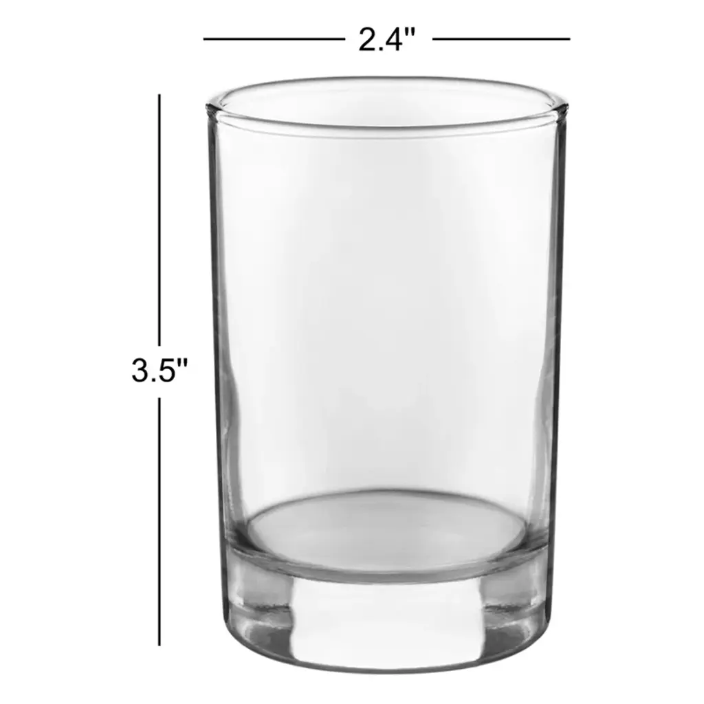 Libbey Heavy Base Glasses Set of 8: Our heavy weighted Libbey juice glasses perfectly complement your Saturday bacon and Sunday morning waffles with a small sip of your favorite fruit juice. Enhance your drinkware collection, with this set of eight classic, clear, small glass juice glasses for everyday use designed for both style and practicality. Crafted in a classic, clear glass design, these round kitchen glasses not only showcase your favorite beverages with a touch of class but also add flair to your tabletop presentations. The 5.5-ounce capacity of the reusable juice glass ensures just the right amount for refreshing orange, grapefruit, and apple juices and other cold beverages. Designed for convenience, the stable and heavy weighted nature of the clear drinking glass makes it powerful enough to stand up to every sugary, syrupy, savory, even boozy, urge your morning brings without the worry of spills or breakage. These easy holding drink glasses are 3.5 inches high, making them easy to store into your cupboard or storage space. Safety is a top priority, and our juice cup set is made from lead and BPA-free glass, ensuring a safe and enjoyable drinking experience for you and your guests. Whether you're hosting an indoor or outdoor gathering, these premium quality drinking glasses set of 8 are everyday drinking glasses, perfectly paired with family breakfasts. Cleaning up your nice glasses for drinking is a breeze as they are totally dishwasher-safe. With proper care, this elegant Libbey drinking glasses gift set will remain a staple in your glassware collection for years to come - daily juice glasses set of 8 for you to enjoy yourself or with friends and family