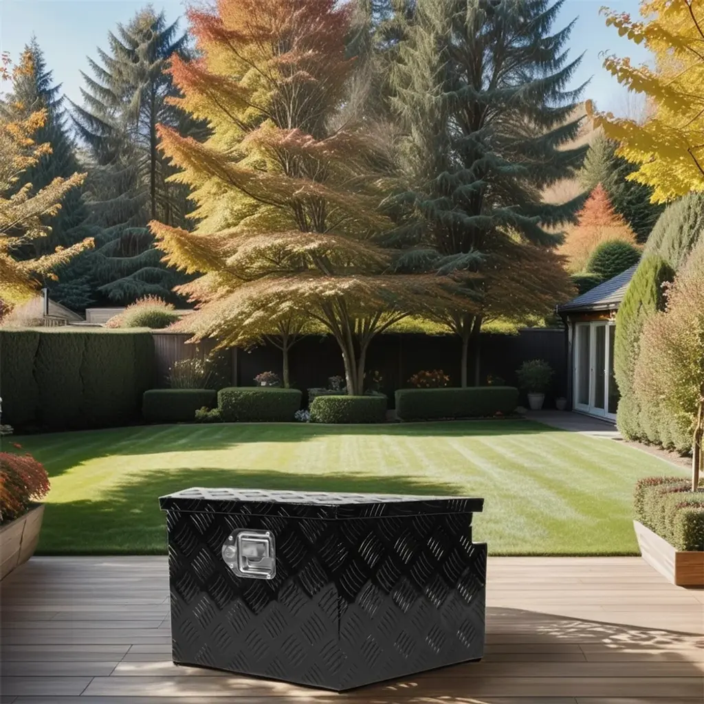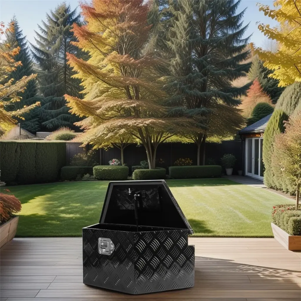 Built for A Lifetime: Stripe tread pattern reinforces the aluminum material for maximum strength and longevity. Rust and corrosion resistant construction offer years of dependability.Secure and Protective: A stainless steel latch keeps your tools and supplies secure, protecting against theft and weather elements. A weather guard rubber seal prevents moisture or water from seeping through, ensuring your tools stay dry.Perfect Tool Cabinet for Anywhere: This tool box can be mounted on a hitch rack, cargo rack of your camper, perfect for the tongue of your enclosed trailer, suitable to be installed on the rear of your RV for extra storage. Widely used: From snow and ice equipment to toolboxes, hydraulics, towing, truck, trailer hardware and Stage sound box storage.More Storage: The drop door opens to provide full access to the contents of the box. Spacious cabinet offers plenty of storage for your tools, small items, accessories, camping supplies, and much more.Sturdy and Lightweight: Our trailer tongue box utilizes thickened aluminum alloy material. Its surface is enhanced with 5-bar patterns and a double-sided dusting process, ensuring excellent rust and wear resistance. Features a robust yet lightweight design, the trailer tool box adds no extra weight burden to the trailer. Plus, we provide a range of sizes to choose from, suitable for various flat trailer and RV models.Weather Resistant: Experience ultimate protection against rain and snow. Our trailer tongue box features an over-lapping door and an extra-wide sealing strip, ensuring a tight seal that shields against water intrusion. Keep your belongings dry, clean, and well-protected, even in harsh weather conditions.Convenient Access: Equipped with a sturdy steel gas strut, it allows for a smooth 90-degree opening of the lid while providing a buffer for secure closing, effectively preventing any sudden injuries caused by abrupt door closure.Safety Comes First: The built-in lock of this trailer tongue tool box is not only to prevent picking, but also to reduce the impact in the process of driving. It's comes with two exclusive keys to ensure the security of your items.▲Notice:1. All colors on our picture are for reference only, actual product colors may vary a little bit, due to different color settings of every screen device.2. Please note: most of our product are hand-measured,therefore, the dimensions are for reference only, and may marginally deviate.3. If you have any questions about this product, please feel free to contact us. We will reply to you promptly.