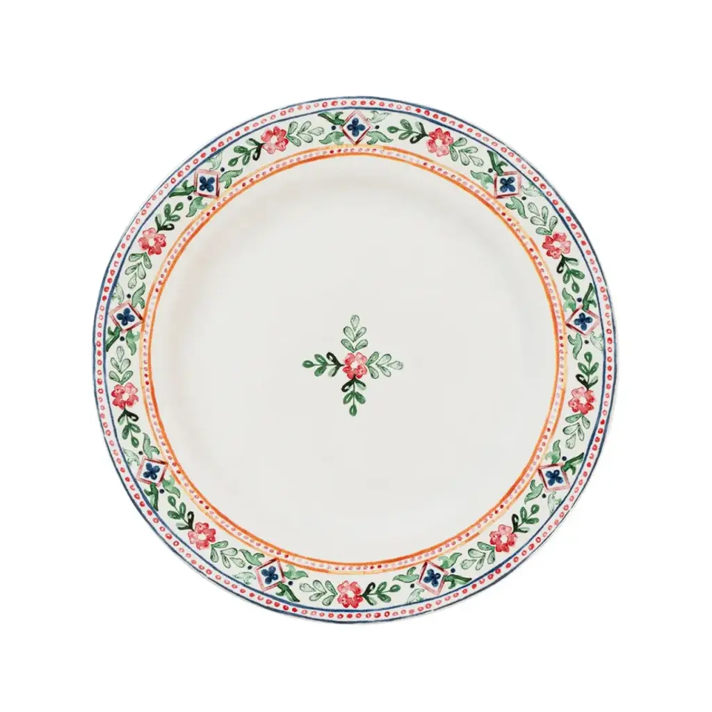 Chic, chalet style is in full bloom with this collection that is inspired by folkloric wildflower motifs from the Alps. With a prim, painterly rim rendered in rich, traditional colors, this cocktail plate is perfect for après-ski nibbles by the fire and layering with other collections in high mountain style. Based in Connecticut, Juliska is committed to bringing elegant European design into our modern homes. Since its founding in 2001, when David and Capucine Gooding began by working with artisans outside of Prague to reproduce antique Bohemian glass pieces, every piece from Juliska has shared a rich heritage spanning six centuries of European design. Juliska's creations are timeless, romantic and effortlessly chic.