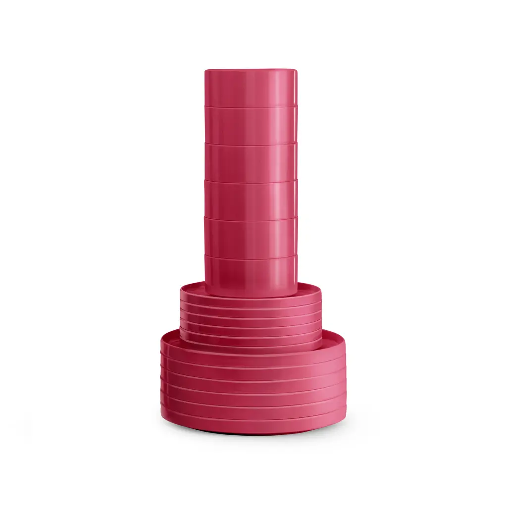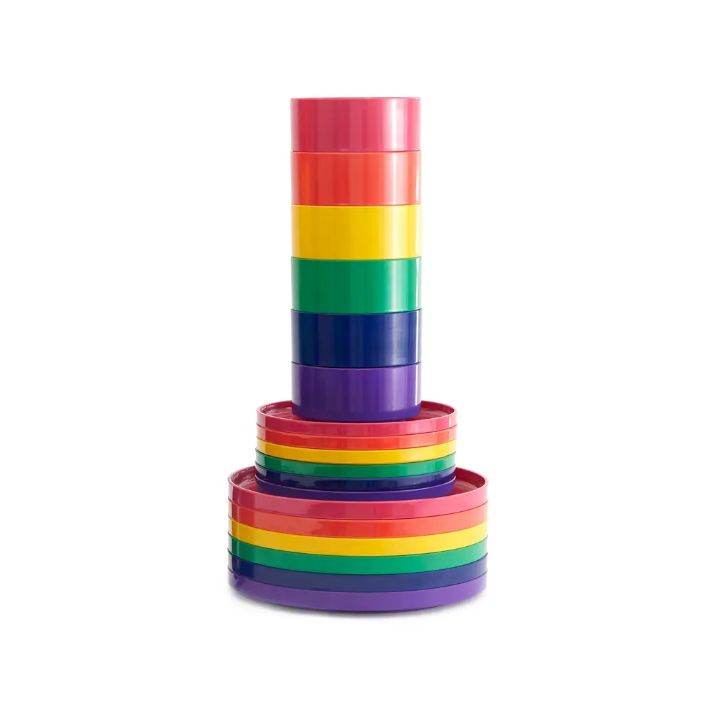 Bring a playful touch to your dining experience with the Hellerware Max Dinnerware (Set of 18) from Heller. This set for six offers crisp, proportioned shapes and glossy rainbow hues for a celebration at every meal. The durable plastic forms are perfect for indoor and outdoor use, and can be easily recycled at the end of their life cycle. Loved by modernists worldwide, Hellerware brings joy to every table. Highlights