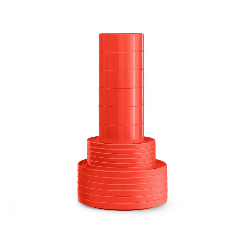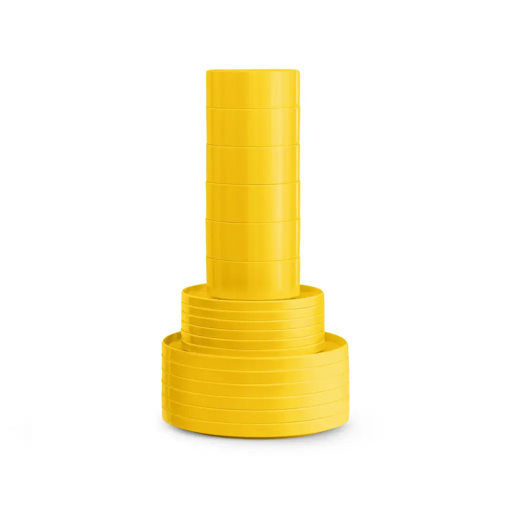 Bring a playful touch to your dining experience with the Hellerware Max Dinnerware (Set of 18) from Heller. This set for six offers crisp, proportioned shapes and glossy rainbow hues for a celebration at every meal. The durable plastic forms are perfect for indoor and outdoor use, and can be easily recycled at the end of their life cycle. Loved by modernists worldwide, Hellerware brings joy to every table. Highlights