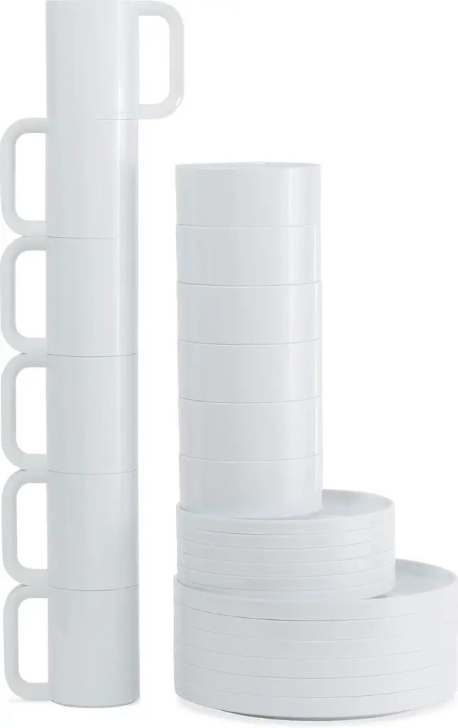 Add a smile to your daily routine with the fun and functional Max Dinnerware Plate (1964) from Heller. An iconic collection by Italian designers Lella and Massimo Vignelli, Hellerware won the prestigious Compasso d'Oro Award for Good Design upon its debut. When it arrived stateside in 1971, Hellerware became an instant kitchen staple, adding color and convenience to mealtimes across America. The genius of the design is in the way it stacks. Made with straight sides and a small lip on the bottom, each plate fits securely into the other, creating a straight stack that maximizes storage space. This is the authentic Hellerware Max Dinnerware from Heller. Made in China.
