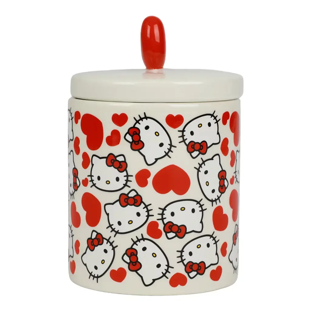 Unleash your inner cupid with this adorable white Hello Kitty Valentine's Day 16 oz ceramic lidded mug! Featuring a charming all-over print of Hello Kitty's face and red hearts, this mug is the perfect companion for your romantic beverage moments. The 3D red heart on the lid adds a delightful touch of love. Crafted with high-quality ceramic materials and measuring 5.71" x 4" x 6", this officially licensed mug is a must-have for all Hello Kitty fans. For long-lasting enjoyment, hand wash only.