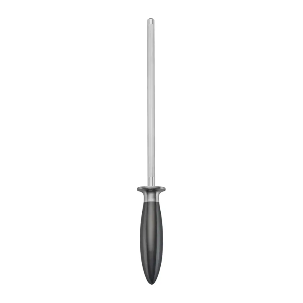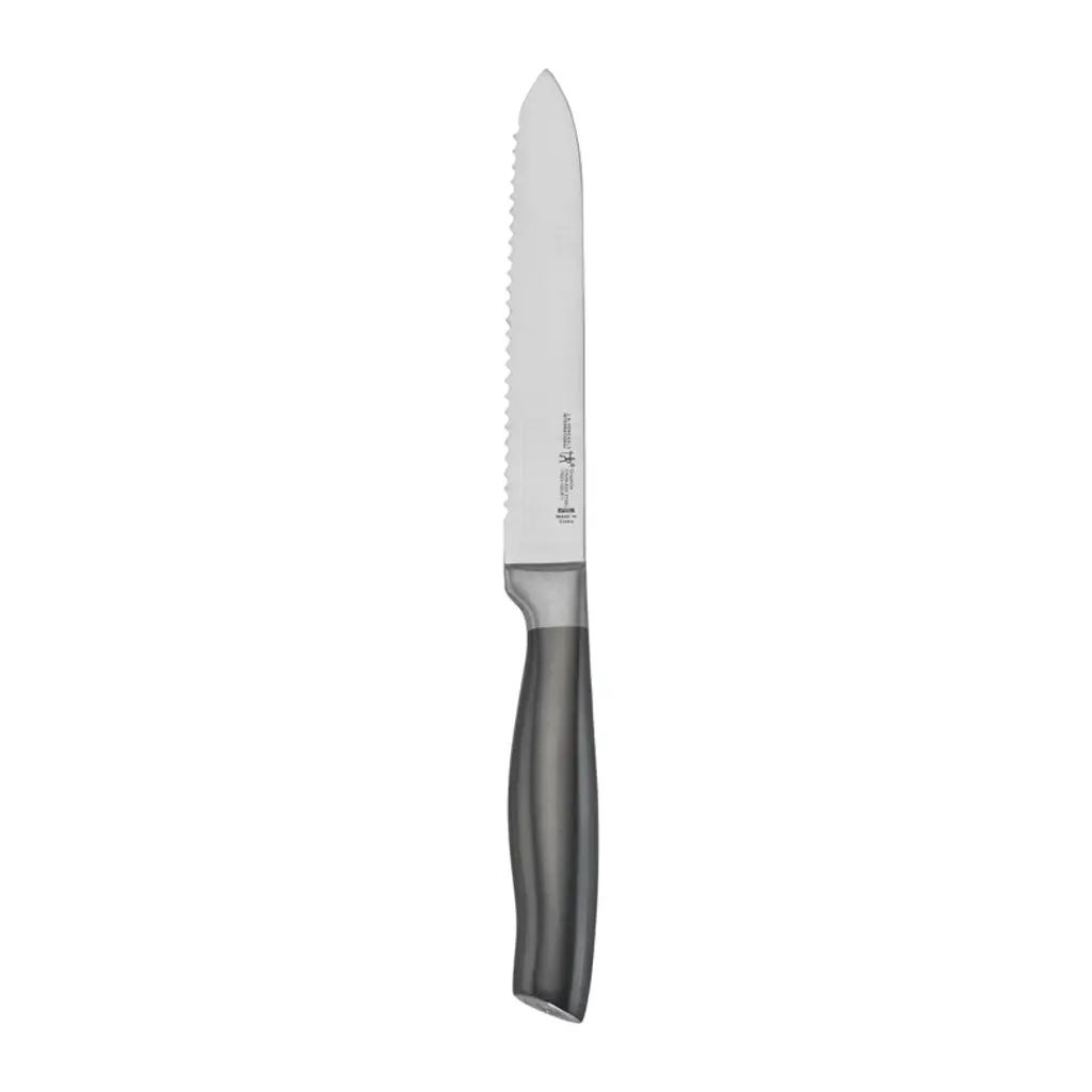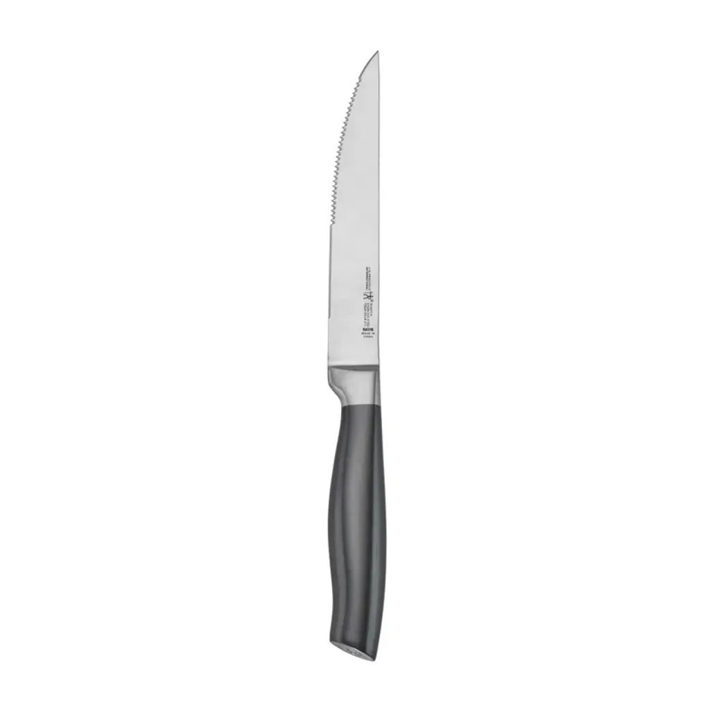 Henckels Graphite makes essential kitchen knives that every home chef needs. Equally ergonomic and stylish, the series offers sleek sharpness. The fully forged bolster construction seamlessly transitions from blade to handle for durability and balance. Fabricated from high-quality stainless steel, the satin-finished blade produces precision cuts and is honed for long-lasting sharpness. Contoured for comfort, the smooth handle is designed for fatigue-free cutting. It has a handsome, stainless steel end cap stamped with Henckels’ single-man logo, a Halberdier, which stands for the brand’s superior quality at an exceptional value. These dishwasher-safe knives make cleaning up a cinch.