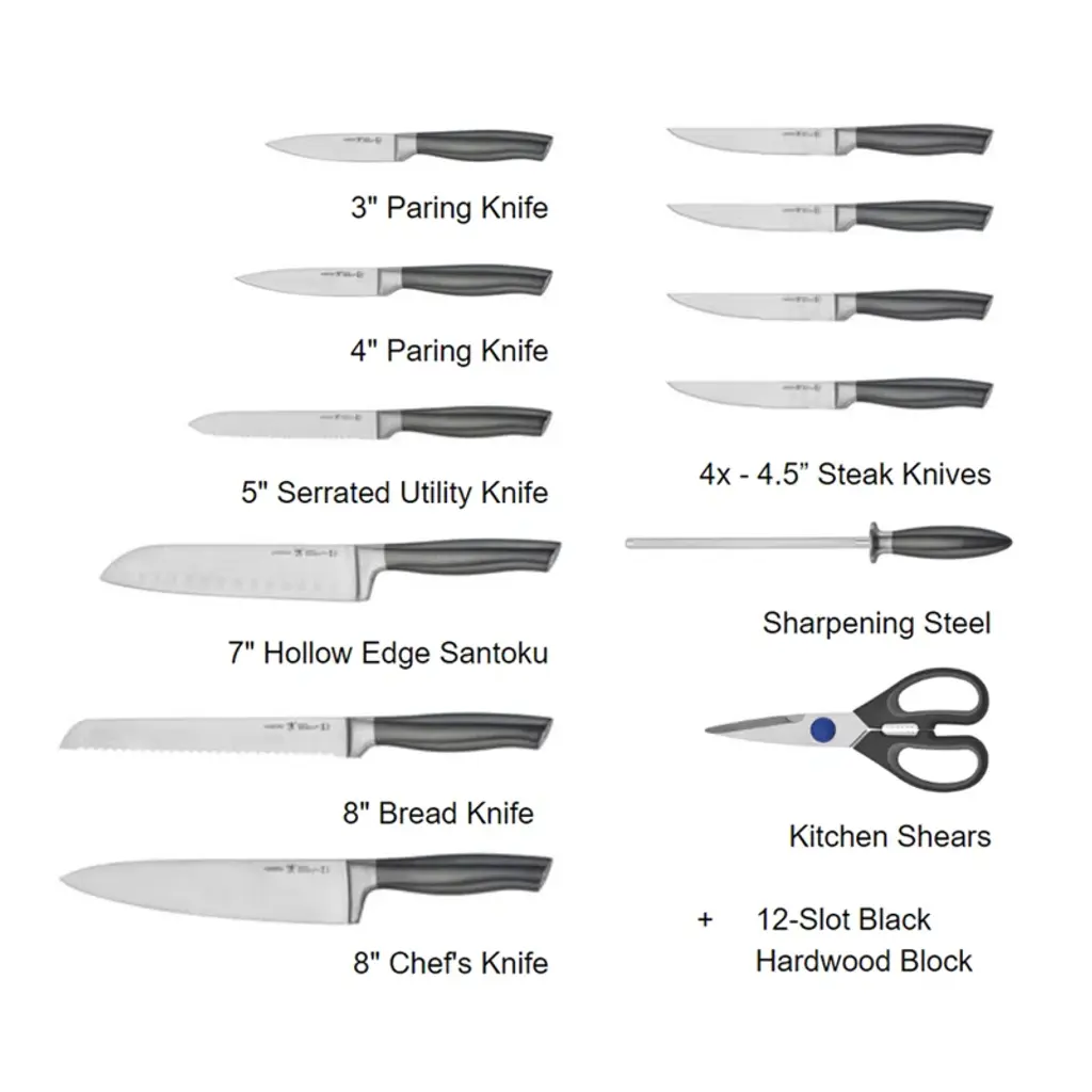 Henckels Graphite 13-Piece Knife Set With Block, Kitchen Knife Sharpener, Chef Knife, Steak Knife, Black, Stainless Steel