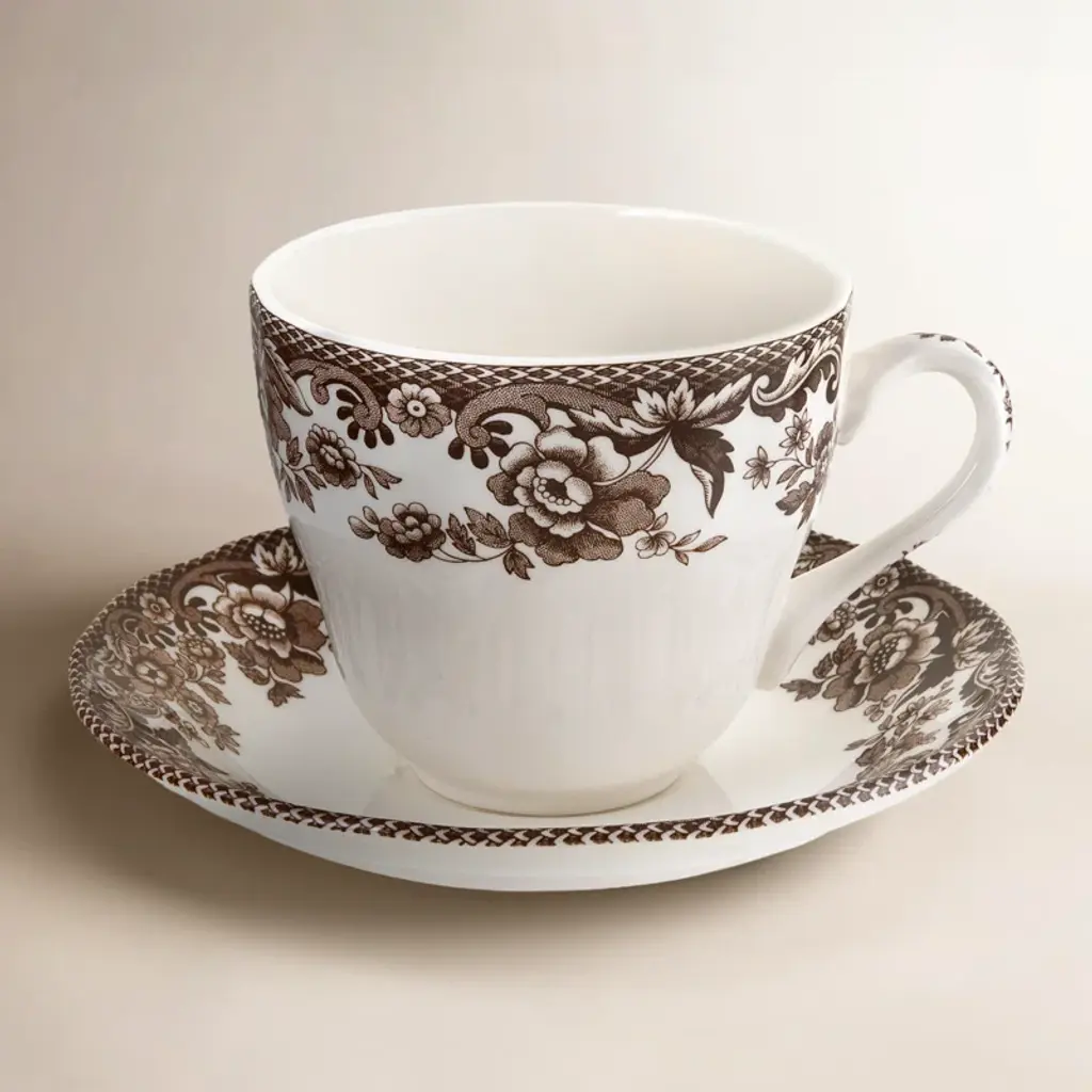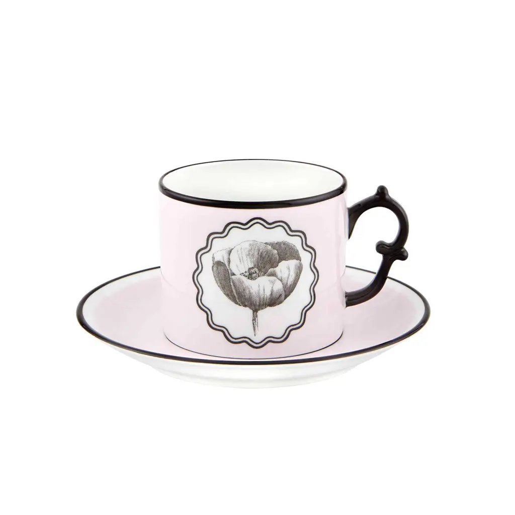 Herbariae Tea Cup And Saucer Set Of 2, Pink And Peacock