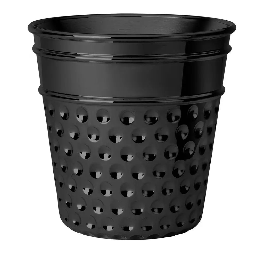 The shape of this exquisite steel ice bucket with a brass finish designed by Studio Job is that of a giant thimble and it is inspired by the family's tailoring tradition. A whimsical etching decorates the top side with butterflies and small artisan's tools and represents the care for each small detail.
