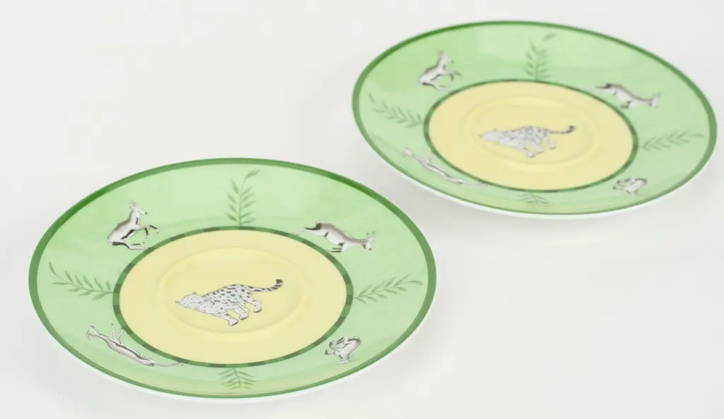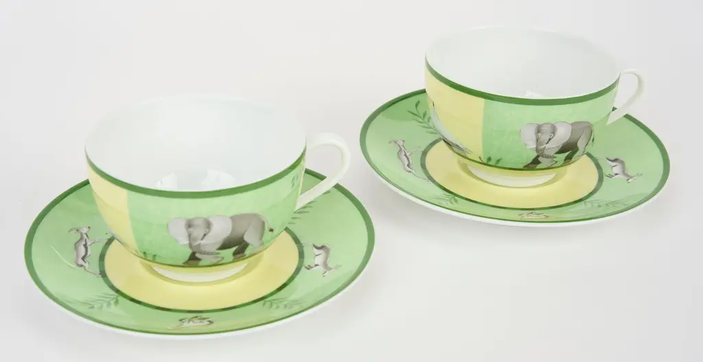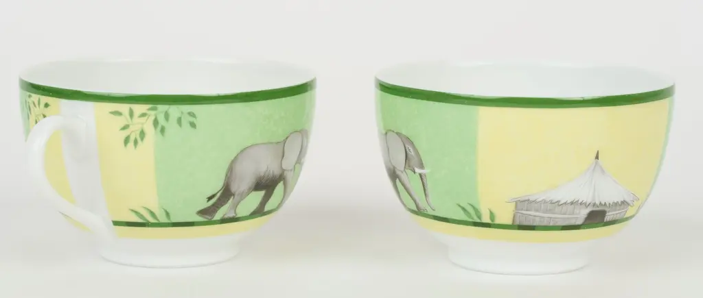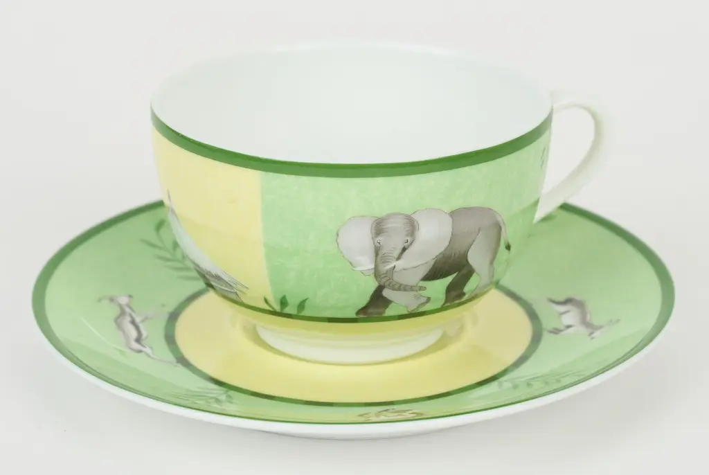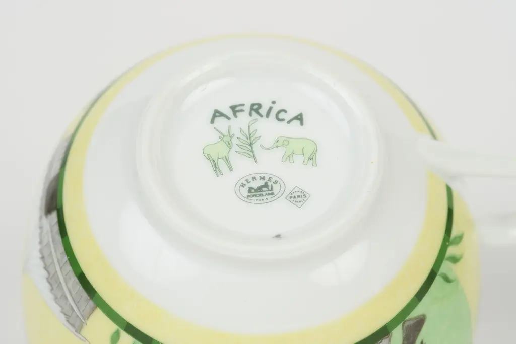 Herm���������s Africa Tea Cup Saucer green and yellow color combination. Set of 2 with original box. Size (approx.): Cup: diameter:3.4 x height 2.2 inch ( 8.7 x 5.6 cm) Saucer: diameter:5.7 x height 0.7 inch (14.4 x 1.8 cm)
