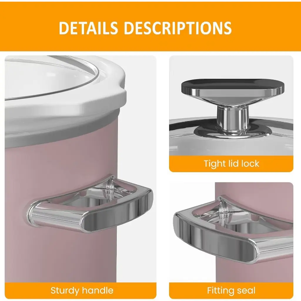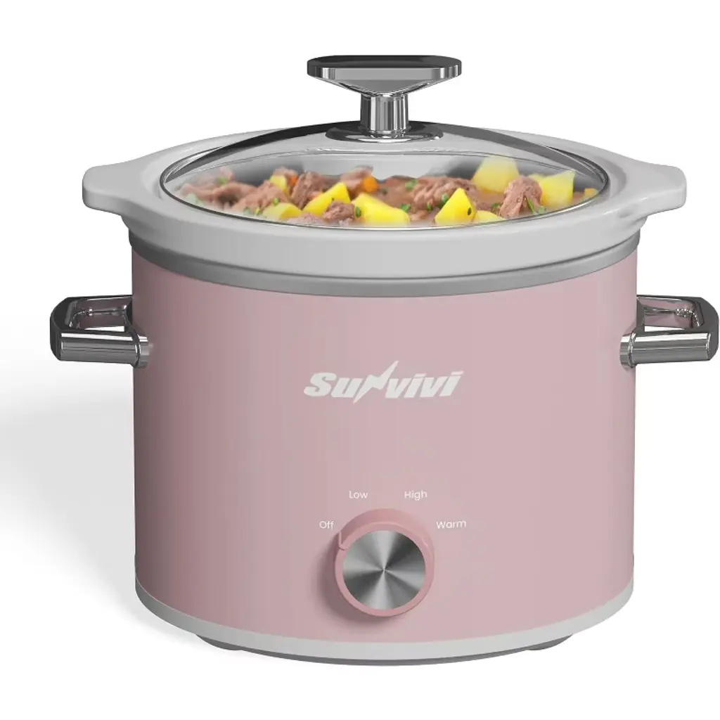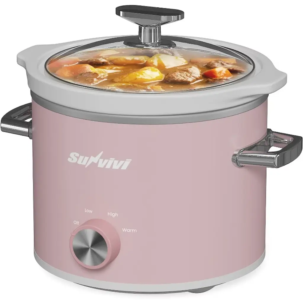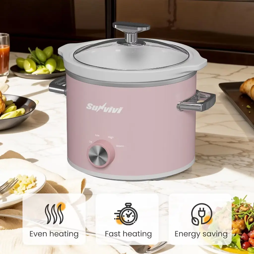 Heynemo 2 Quart Slow Cooker, Small Slow Cooker With Removable Ceramic Pot, Slow Cooker Food Warmer With 3 Heating Settings & Dishwasher Safe, Pink
