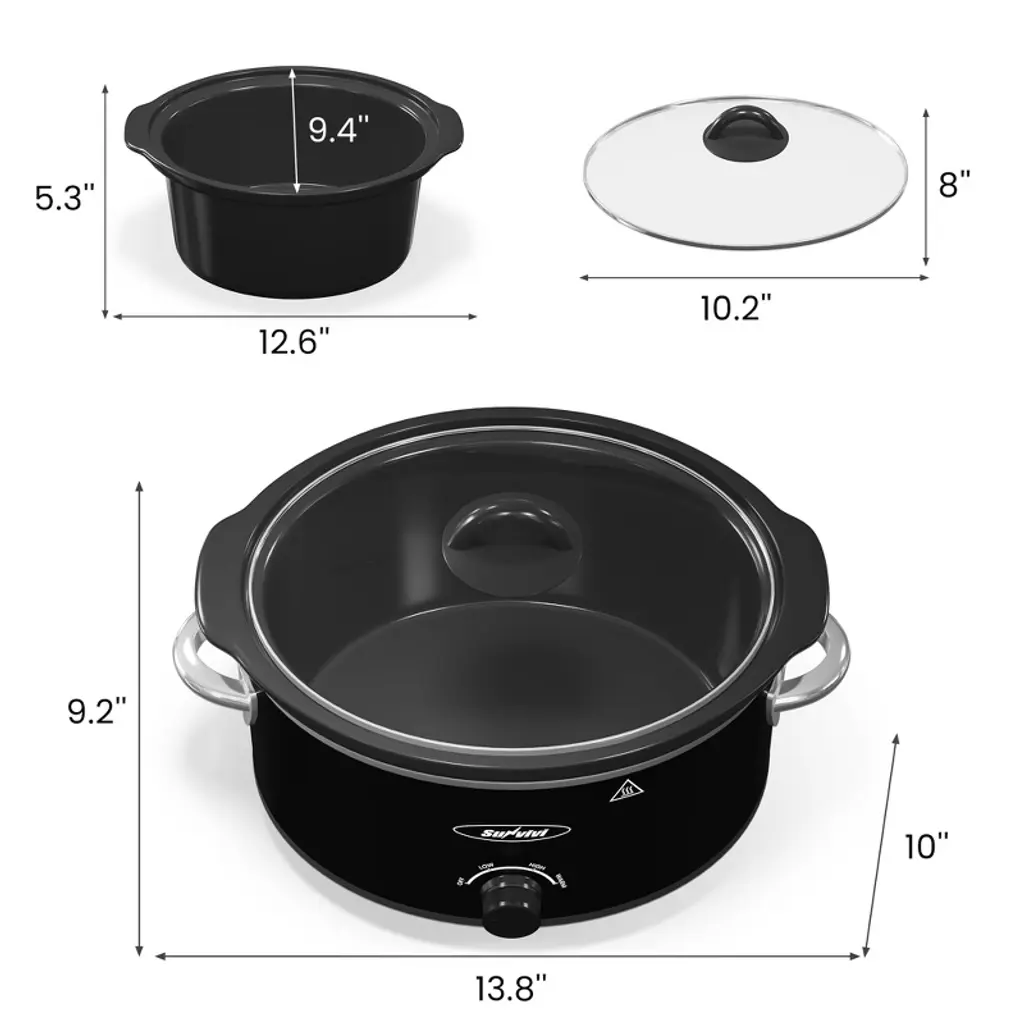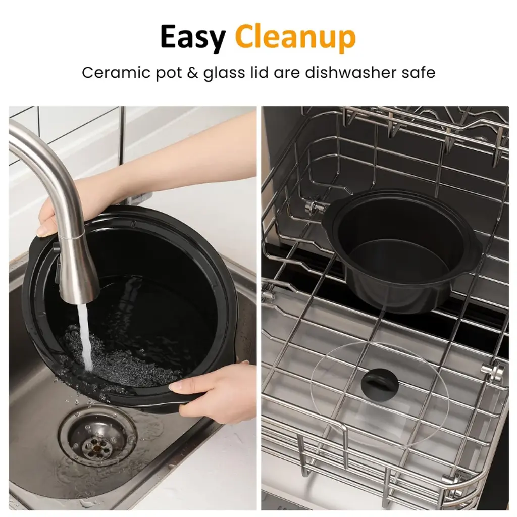This 4 qt slow cooker is perfect for small families or individuals, offering precise control with its low, warm, and high settings. Whether you're gently simmering hearty soups and savory stews on a low setting, maintaining the perfect warmth for serving your favorite dishes, or searing meats to perfection at higher temperatures, the versatility of this mini slow cooker knows no bounds. It effortlessly accommodates a variety of cooking tasks, ensuring each meal is prepared with precision and care. Just simply add your ingredients, select the desired temperature setting, and let the cooker do the rest. Experience the culinary excellence of the small crock pot, making meal prep a breeze and every dish a masterpiece. Specification Product Name: 4 QT Slow Cooker Color: Black Material: Stainless Steel, Tempered Glass, PP, Ceramic Dimensions: 14''L X 10''W X 9''H Capacity: 4 QT Voltage: 120V Frequency: 60Hz Power: High: 160W, Low: 120W, Warm: 40W