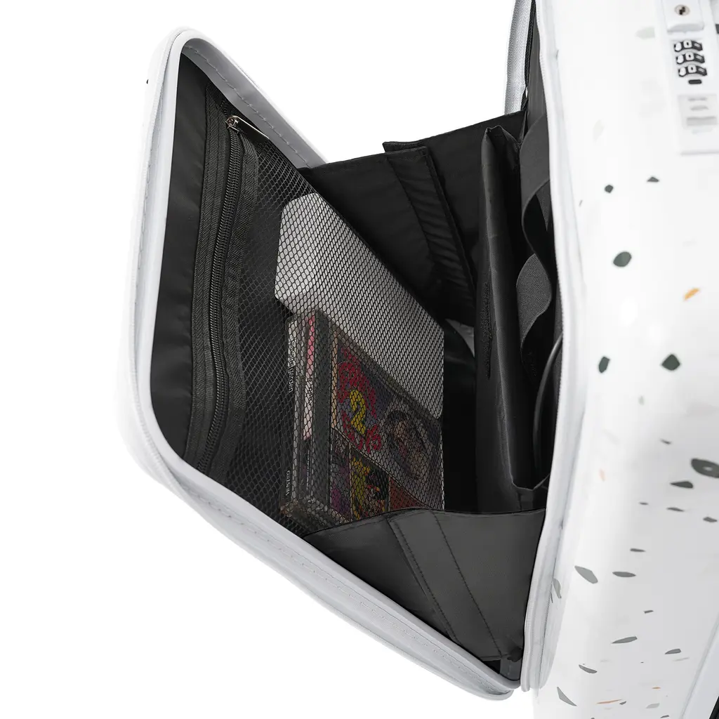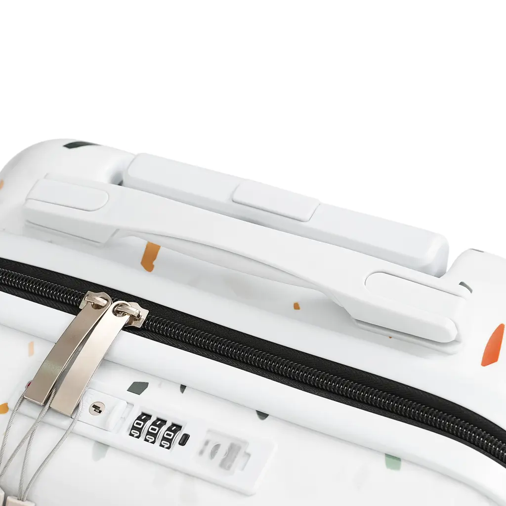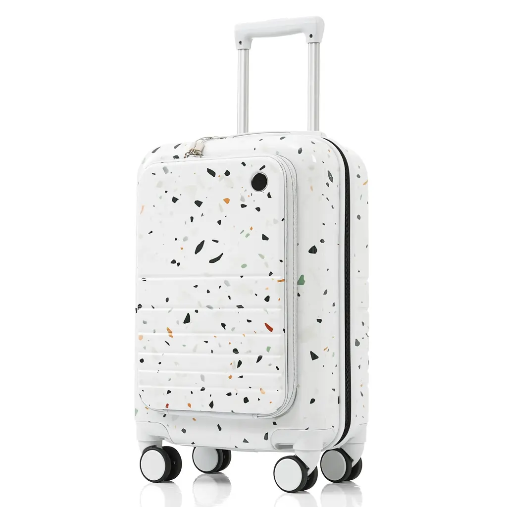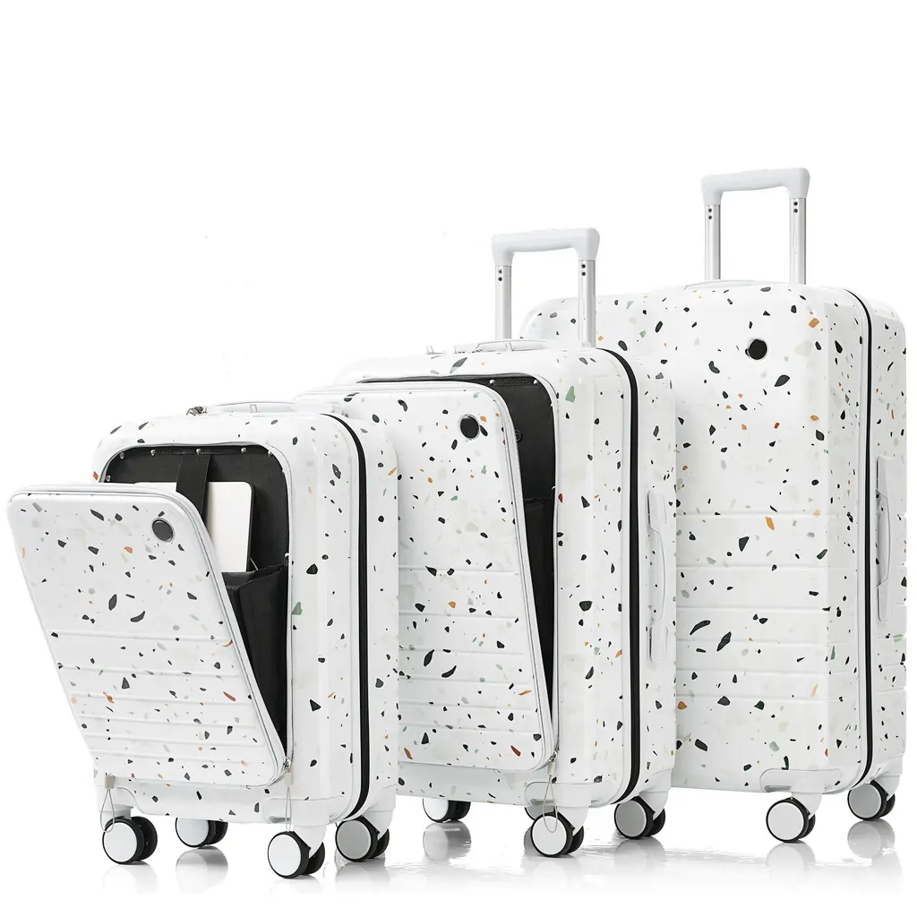 High Quality Front Opening Luggage Sets 3 Piece, Abs+pc Hard Carry On Suitcase With Usb Port And Cup Holder & Spinner Wheels - Ivory+white