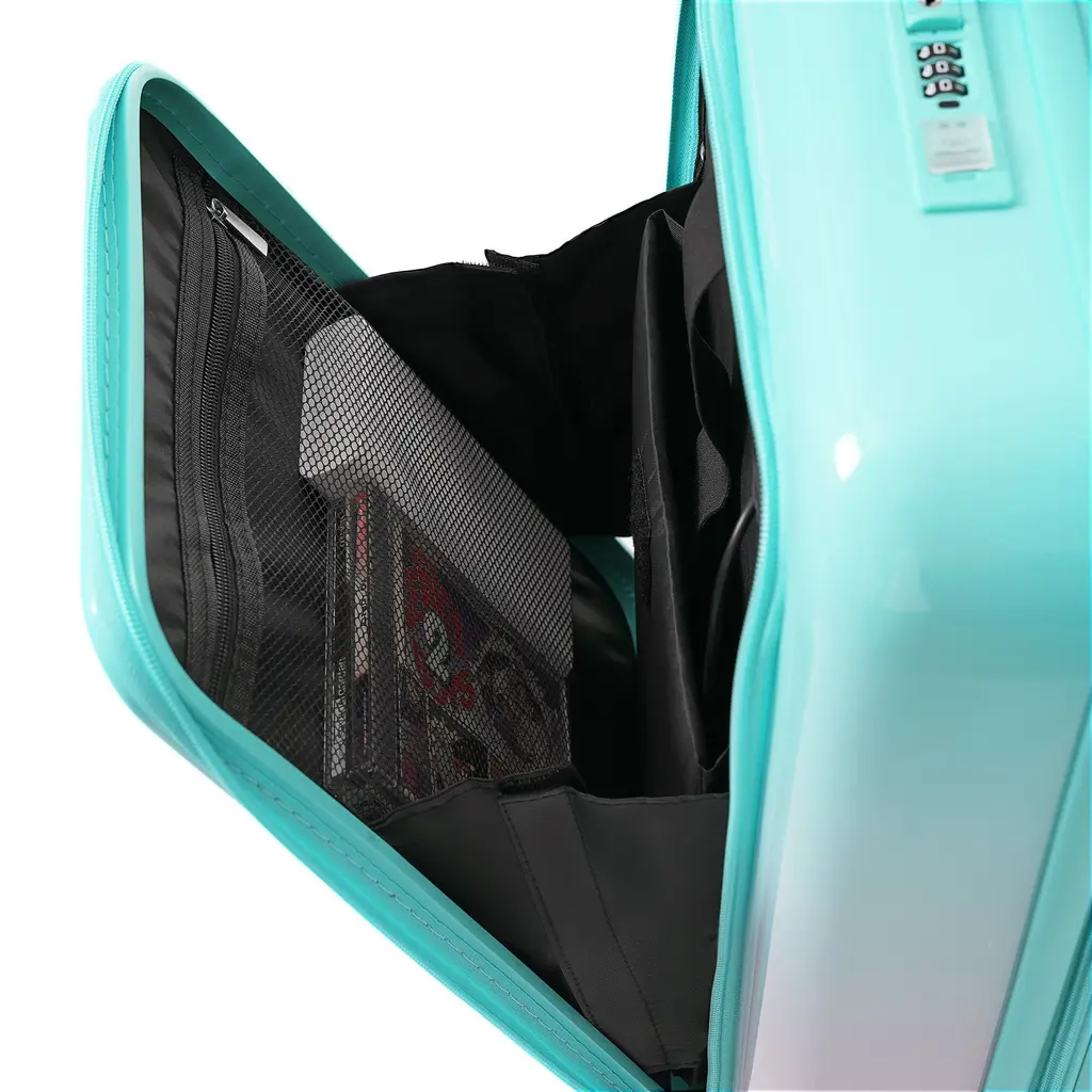 High Quality Front Opening Luggage Sets 3 Piece, Abs+pc Hard Carry On Suitcase With Usb Port And Cup Holder & Spinner Wheels - Light Blue