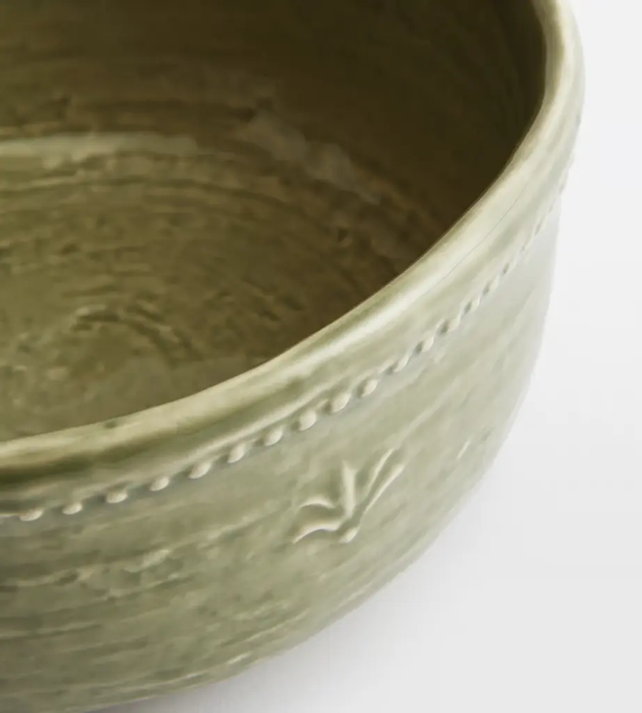 Crafted from robust Tuscan stoneware, the latest additions to our signature Hillcrest range are washed in a green glaze and handmade by skilled Italian artisans who have been producing ceramics in a village outside Florence for 40 years. Drawing on the rustic interiors at Soho Farmhouse, each piece is embellished by hand, with the individual marks of the maker adding charm and character.