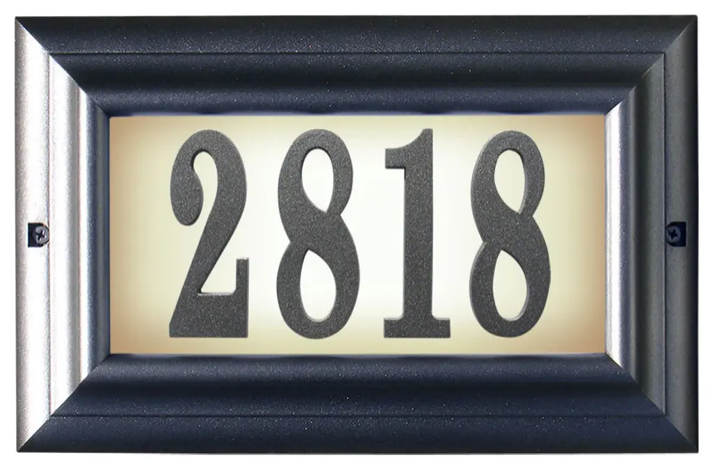 The Hillman Distinctions Black Die-Cast Zinc Heritage Address Plate offers a stylish and durable solution for displaying your home address. Crafted from high-quality die-cast zinc, these plaques feature a sleek black finish with a silver border, ensuring visibility and curb appeal. Weather-resistant and designed for long-lasting use, these address plates are perfect for enhancing your home's exterior.