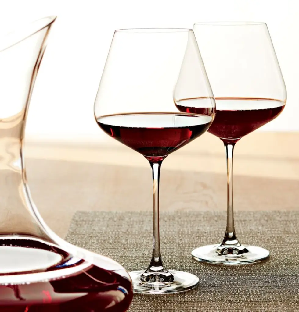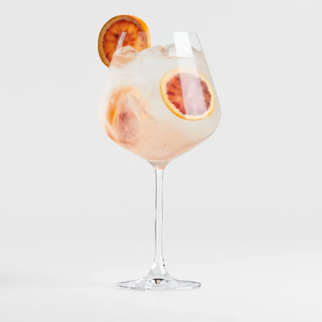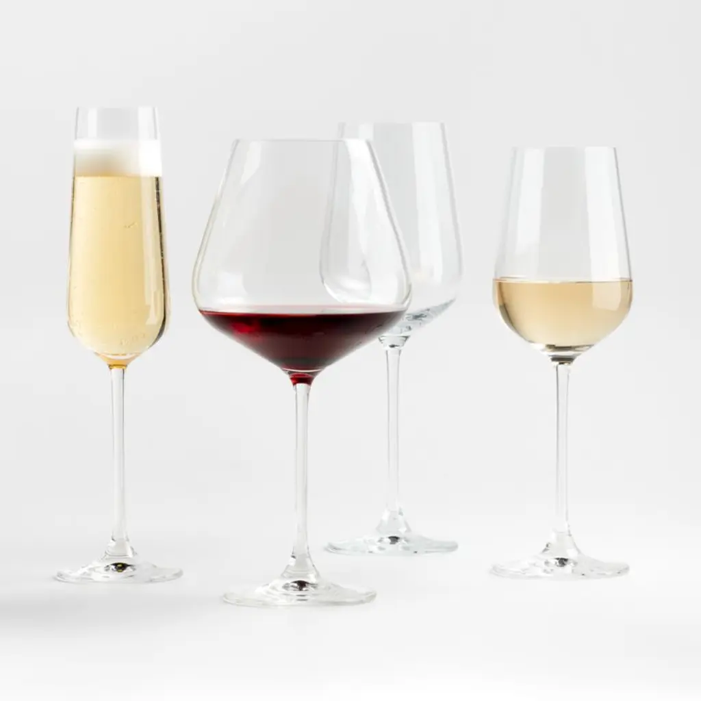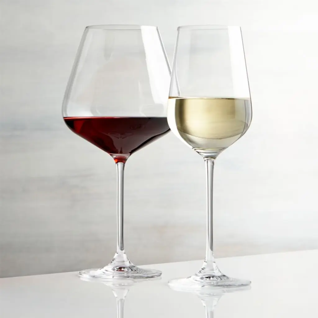 Our oversized wine glass has a refined modern profile with flared bowl, slender stem and fine rim. With its clean lines and unique curves, the Hip large red wine glass is an updated take a classic. Despite its delicate appearance, this glass is dishwasher-safe for easy cleanup after dinner parties, holiday gatherings and weeknight meals. Complete your glassware collection with our Hip white wine, champagne and 19-ounce red wine glasses. Voted the Best Large Wine Glass by Forbes, our Hip oversized red wine glass is a Crate & Barrel exclusive. Need help choosing? View our types of wine glasses guide