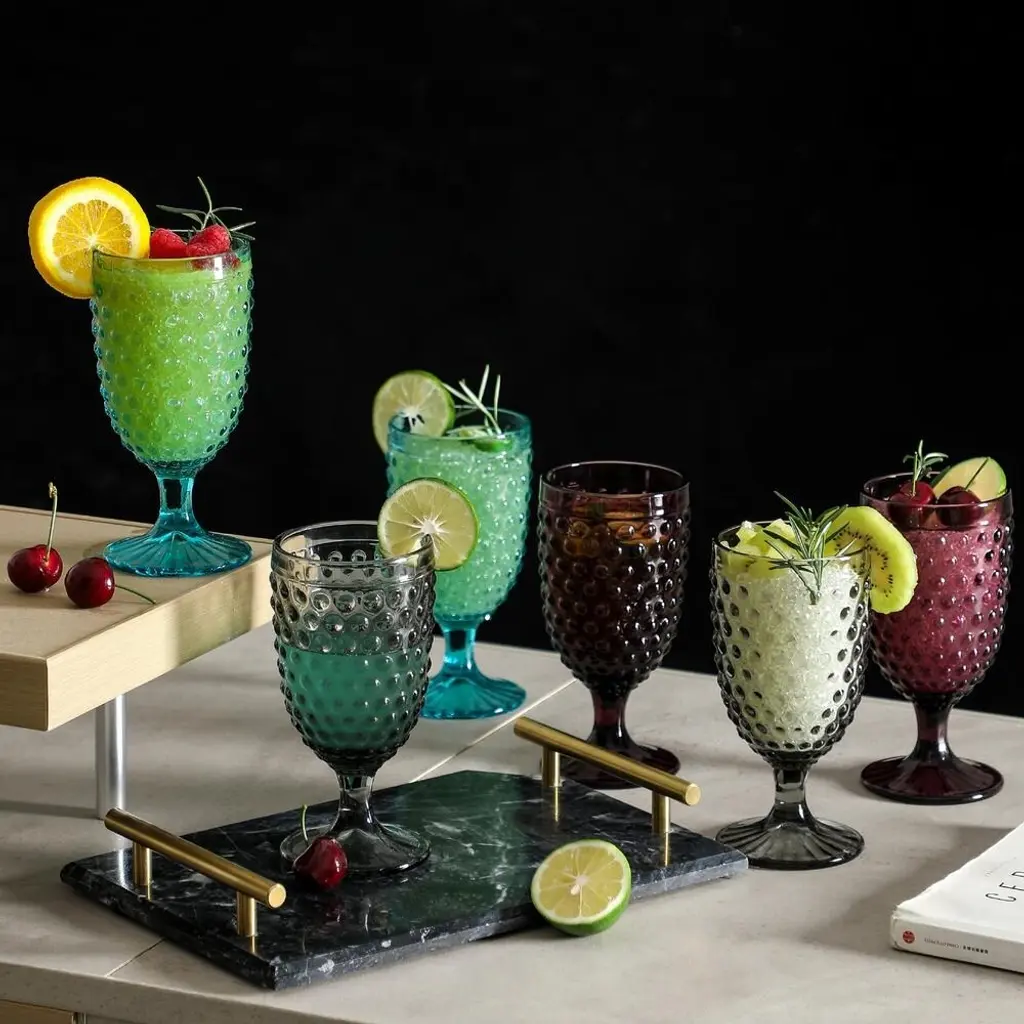 Hobnail Colorful Vintage Iced Beverage Goblet Glasses 13 Oz. Set Of 6 - 3.5"w X 6.8" H - Multi