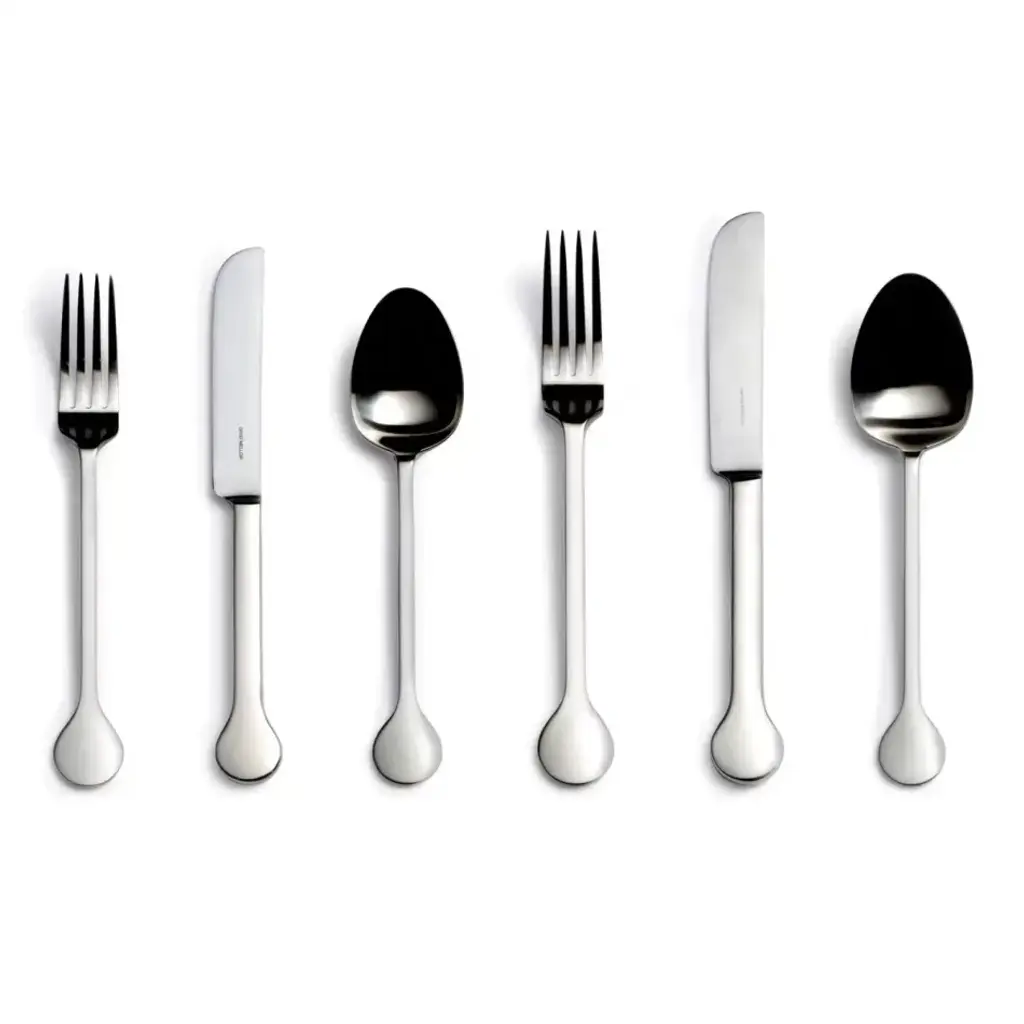David Mellor's Hoffmann is a design of immense elegance and quality with conscious overtones of early 20th century Arts and Crafts metalwork design. New techniques of hot forging allow subtle gradations of shaping, culminating in the unique pear-drop ends. All David Mellor pieces are available by special order; please allow 4-6 weeks for delivery.