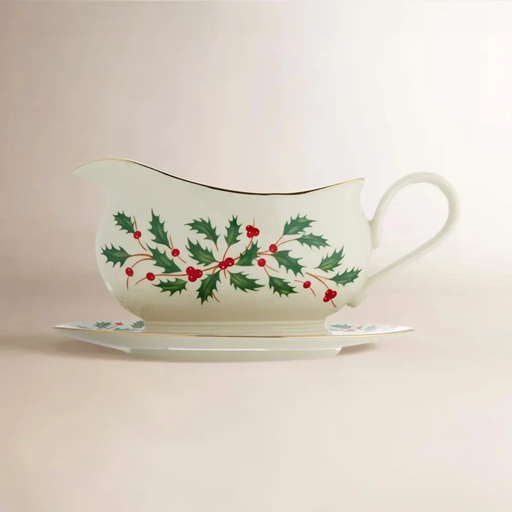Decorated with the brand's iconic holly and berries motif and 24K gold accents, Lenox's festive collection is at the center of any warm and inviting holiday tablescape.