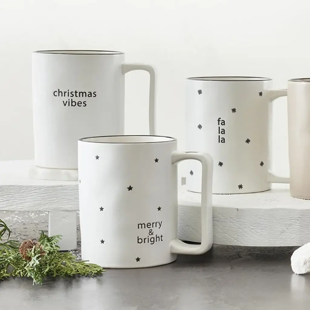 Spread holiday cheer with our festive mugs! Featuring a smooth matte finish, debossed phrases, and a playful icon on the handle, they're the perfect gift for any coffee, tea, or hot cocoa lover.