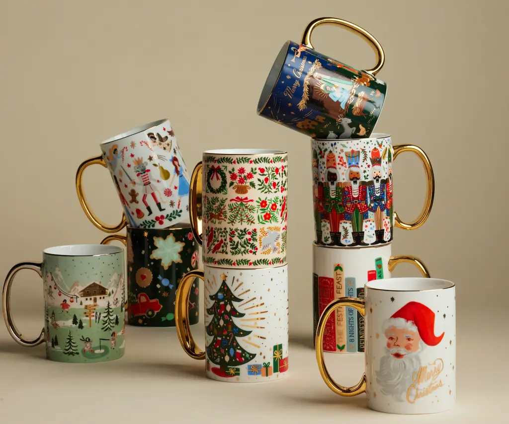 Visions of sugarplums will dance in your head when you use our Nutcracker mug, with our favorite characters from the classic ballet. Our porcelain mugs feature illustrated designs with gold accents and a gilded rim and handle to add a festive touch to your favorite beverage.
