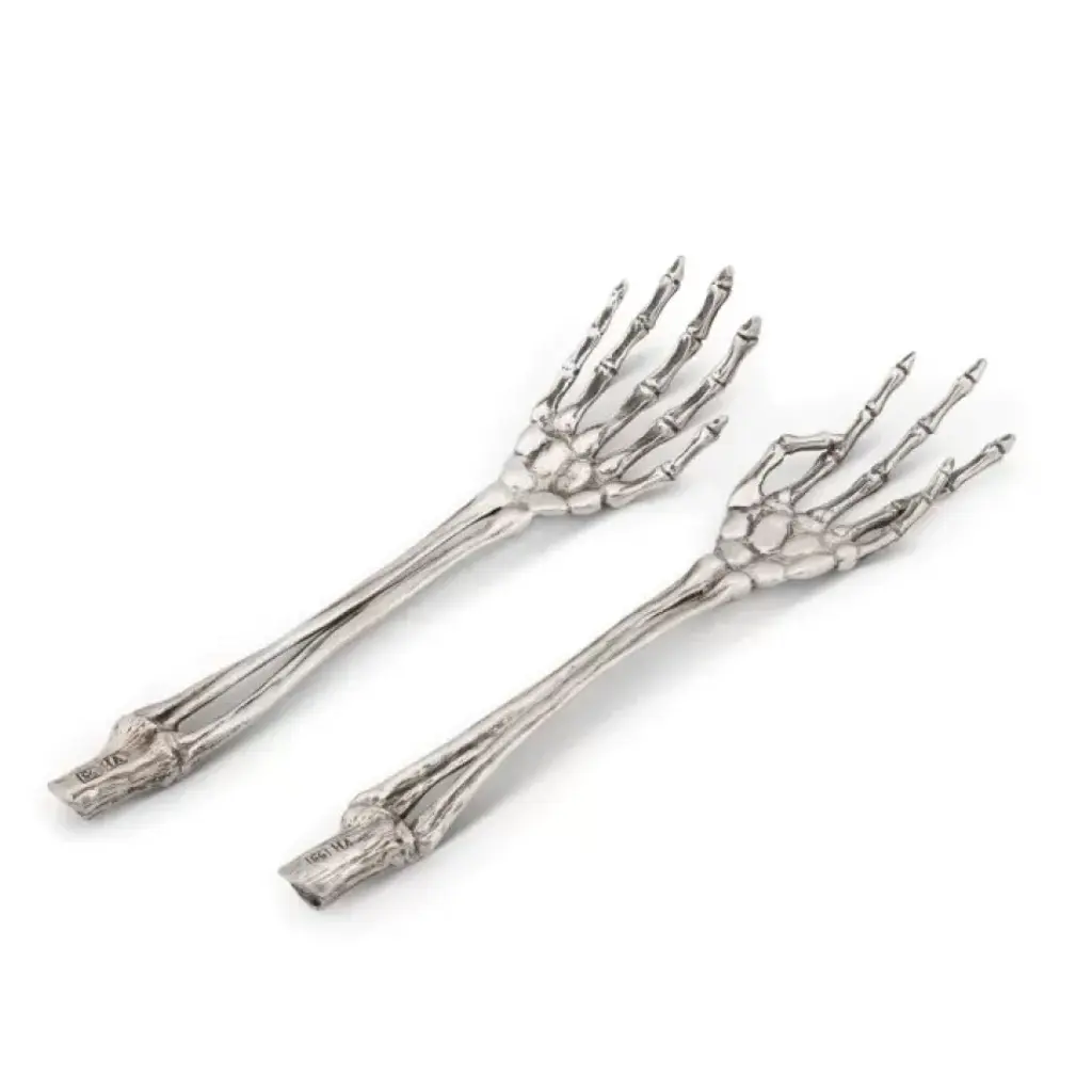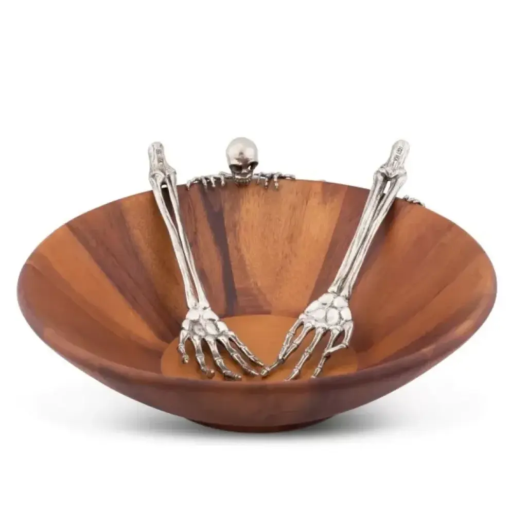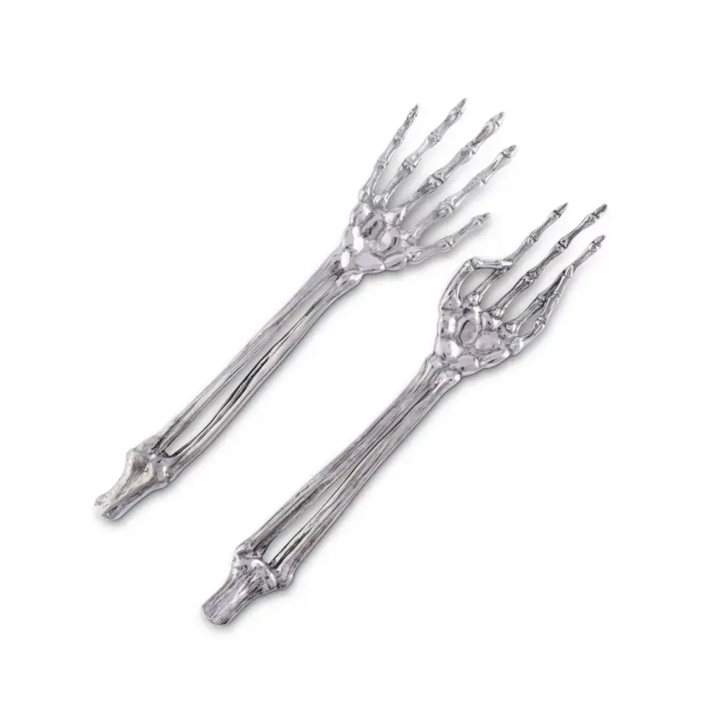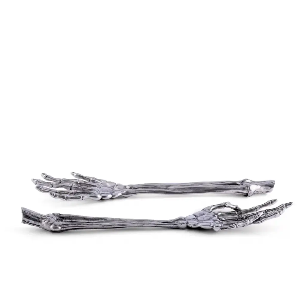 Scary real or real scary? Either way, the eye-popping detail of these fantastical, pure pewter Vagabond House Skeleton Salad Server set will be the talk of your table. Vagabond House’s Skeleton embellished products are inspired by traditional and elaborate sugar skulls and skeletons created to celebrate Día de los Muertos. Our minimalist skeleton decorated products are also perfect at Halloween, Mardi Gras, mystery dinners; any time a suggestion of intrigue and danger adds festive fun to a celebration. Vagabond House is a family-owned American company specializing in fine pewter tableware, servingware and giftware. Largely inspired by nature, their exclusive products are designed to be unique, functional heirlooms for those who seek to express tradition and style in both family and formal entertaining.