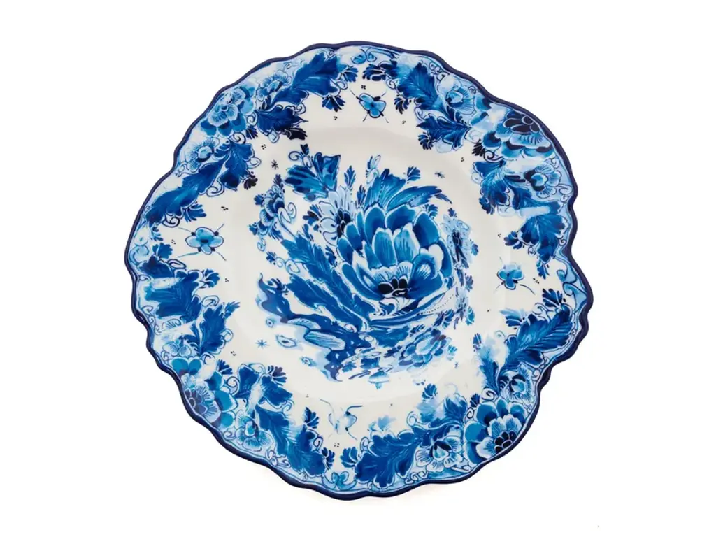 Porcelain Dinner plate. A classic look with a crazy twist for party lovers and eclectics.Beautiful on the wall, marvelous for an unexpected distorted table set up.