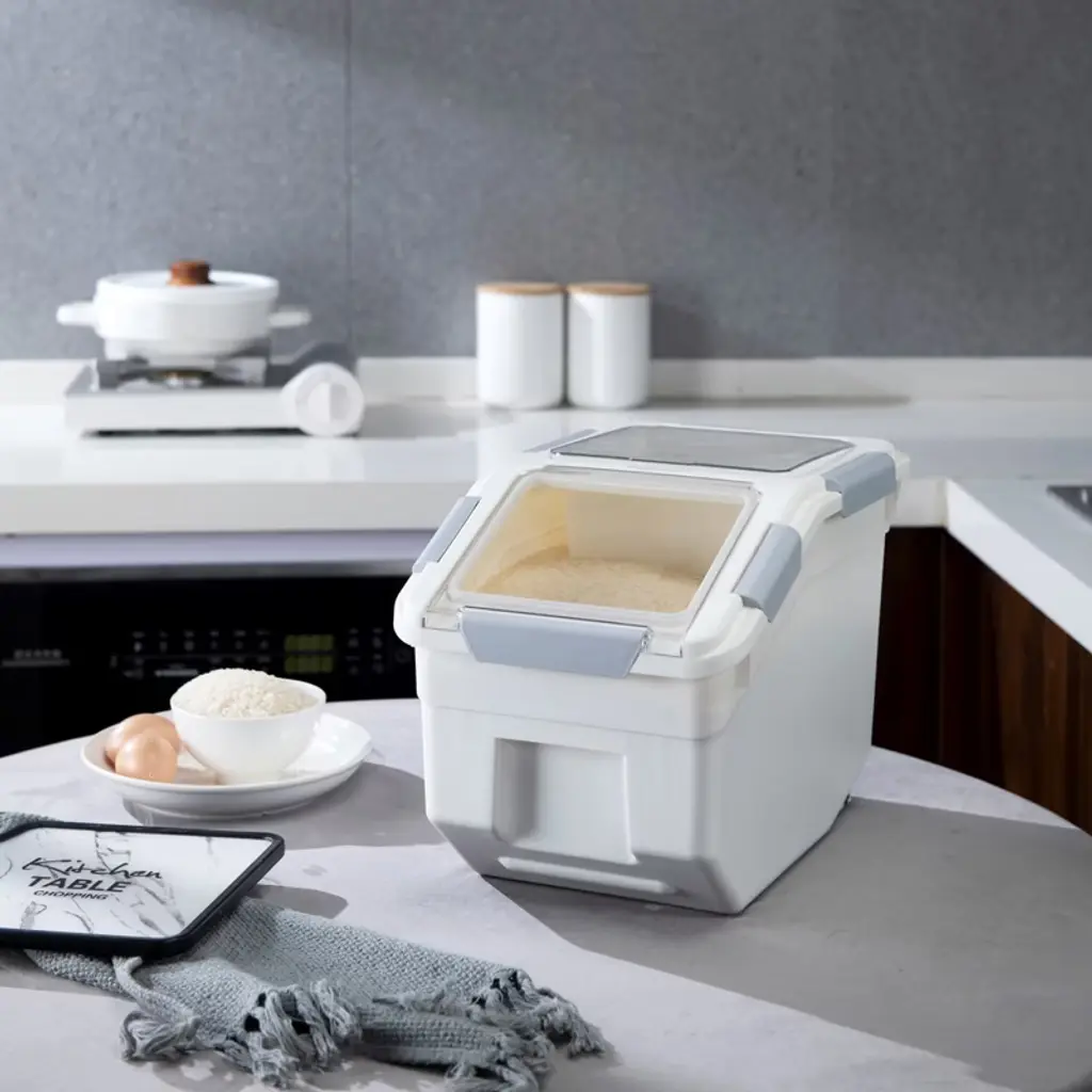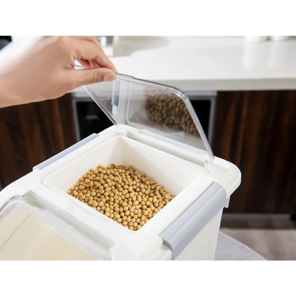 Homestock 20 Lb Rice Storage Container With Measuring Cup, Bpa Free, For Rice / Grain / Pet Food / Flour, 1 Count, White & Gray