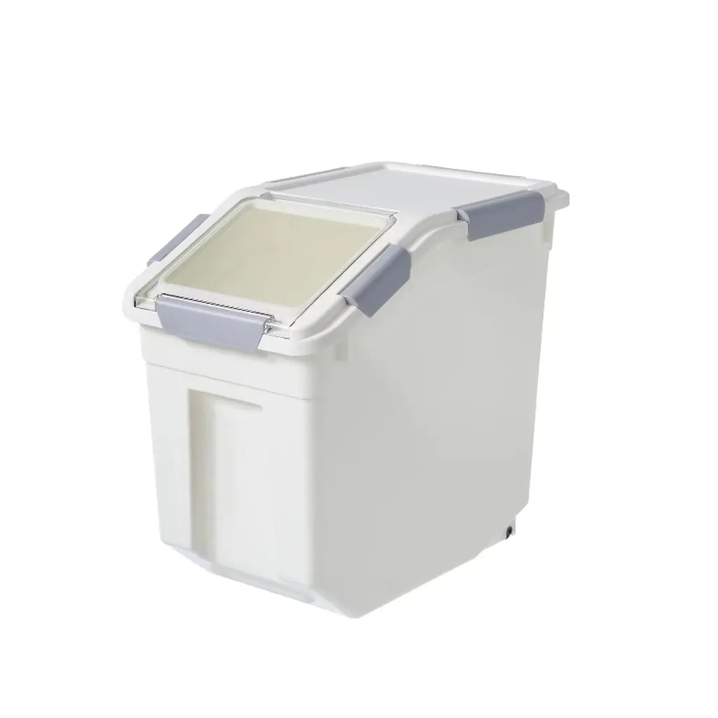 This Food Storage Container is made of food-grade PP material, BPA free. It's ideal for storing rice, flour, corn, beans, pet dry food, etc. The airtight silicone sealed cover with a flip lid and 6 locks keeps food fresh and safe, and prevents moisture and dust. It designs in five available sizes for you to choose the best option as needs. The storage container bin can be used as a rice/grain stocker, pantry storage, pet food container for dog food, cat food, or birdseed, as well as a storage bin for toys, leash, cat litter, etc.