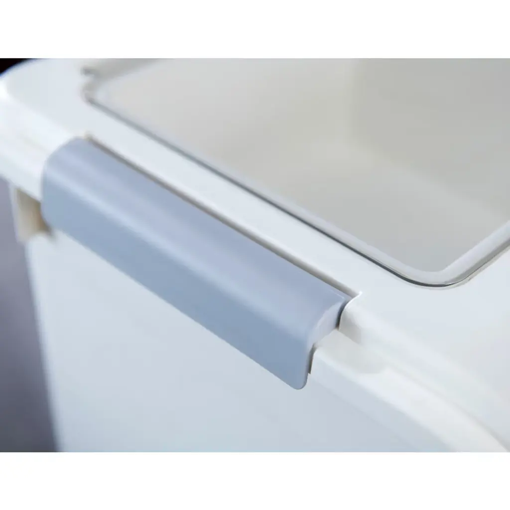 This Food Storage Container is made of food-grade PP material, BPA free. It's ideal for storing rice, flour, corn, beans, pet dry food, etc. The airtight silicone sealed cover with a flip lid and 6 locks keeps food fresh and safe, and prevents moisture and dust. It designs in five available sizes for you to choose the best option as needs. The storage container bin can be used as a rice/grain stocker, pantry storage, pet food container for dog food, cat food, or birdseed, as well as a storage bin for toys, leash, cat litter, etc.