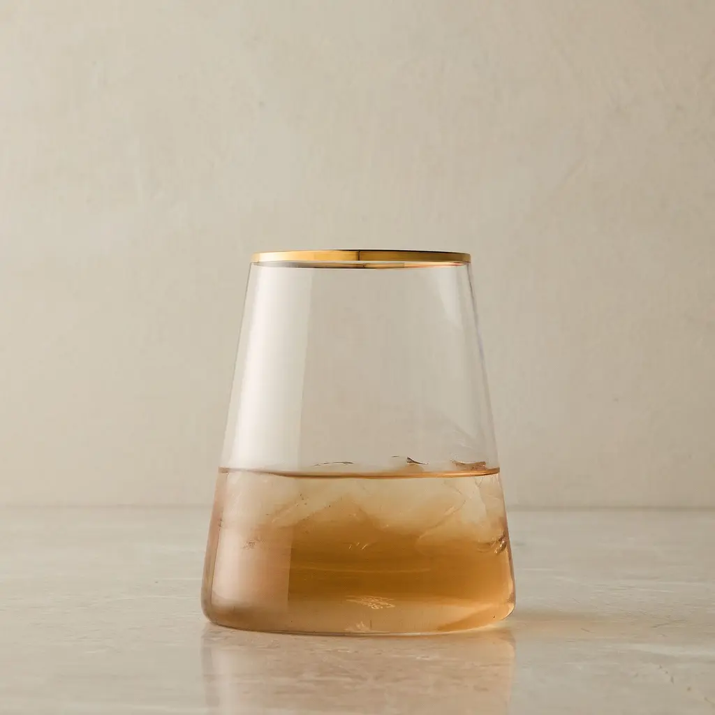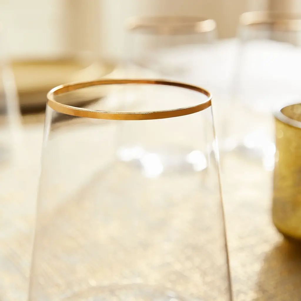 Horizon Lead-Free Crystal Gold-Rimmed Stemless Wine Glass Sets
