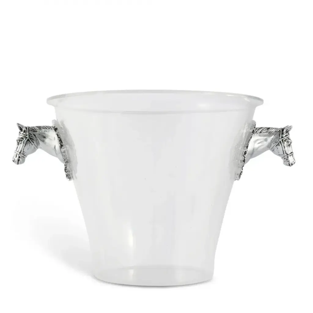 Bring sophistication and style to your bar décor with Arthur Court's Designer horse-themed ice bucket for stylish entertaining. Crafted with an exquisite attention to detail, this icebucket boasts a unique horse-head handle that adds a touch of equestrian elegance. A perfect centerpiece for cocktail evenings, our ice bucket is more than just functional, it's a piece of art. Not only does its aesthetic charm elevate your space, but this unique horse-themed barware for cocktail evenings also ensures your drinks stay perfectly chilled. The elegant acrylic ice bucket with horse-head handle is light yet durable, with a generous capacity for ice. It's designed to celebrate your love for horses and high-quality barware in a remarkable way. This ice bucket also makes the perfect meaningful gift for horse enthusiasts, ensuring their entertaining is immediately upgraded to a style befitting them.