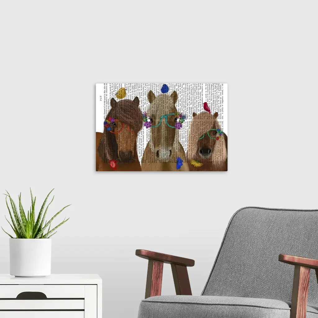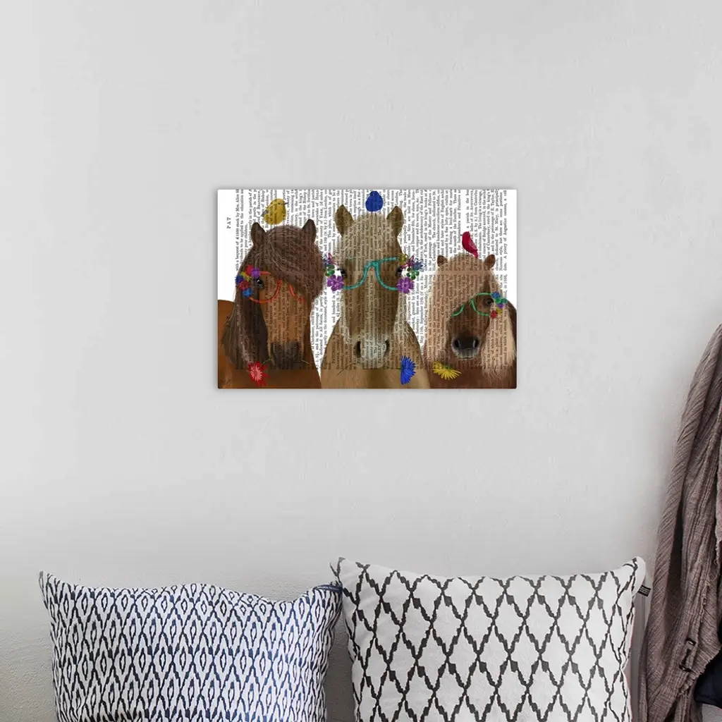Horse Trio with Flower Glasses wall art for home and office decor. Discover canvas art prints, photos, mural, big canvas art and framed wall art in GreatBigCanvas.com's varied collections.
