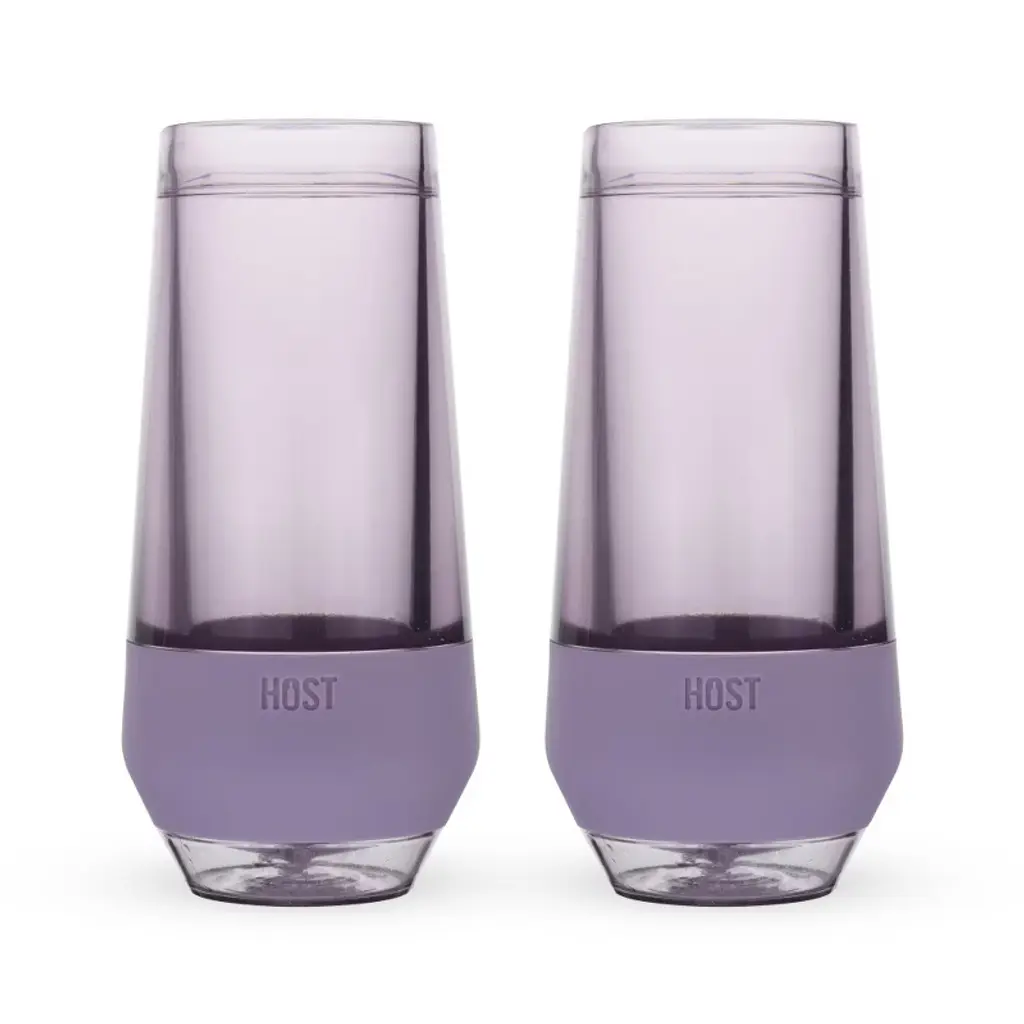 Host Champagne Freeze Double-walled Stemless Wine Glass, Glasses Drinking Set Cooling Cups, 9 Oz Plastic Colored Glassware, Deep Lilac Purple Set Of 2