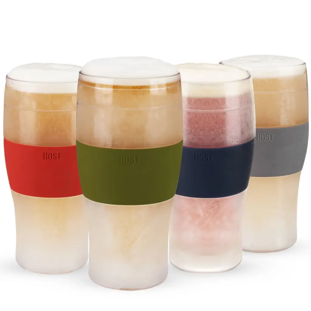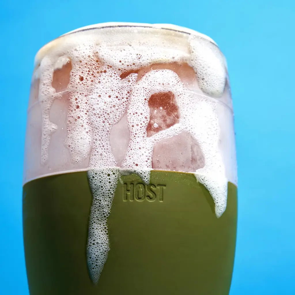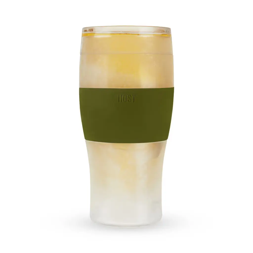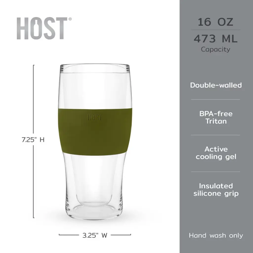 Host Freeze Beer Cooling Cups, Frozen Beer Mugs, Freezable Pint Glass Set, Insulated Pint Glass, Double Walled Insulated, 16oz, Set Of 2, Olive