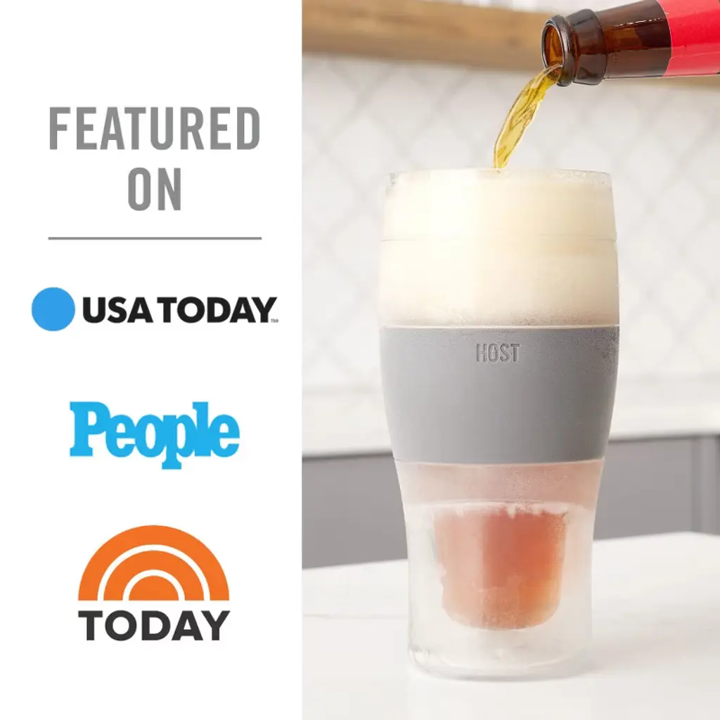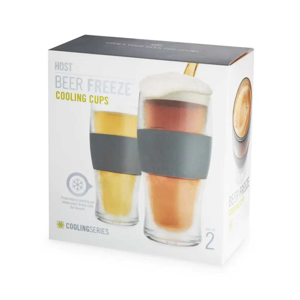 INSULATED WITH ACTIVE COOLING GEL Keep your beer cold, as the powers that be intended. Next time your buddy tosses you a cold one, make sure it’s actually cold—and stays cold. The Beer FREEZE is ready to rescue you from room temperature brews and ensure your favorite IPA stays nice and frosty for over an hour. Just chill the double-walled pint upside down in the freezer for at least 2 hours to freeze the active cooling gel. Capacity: 16 oz. Set of 2 Materials: BPA-free plastic, stainless steel, silicone Design: Insulated walls with active cooling gel Care: Hand wash Directions: Stash your Beer FREEZE upside down in the freezer for refreshingly cold brewskis. For best results, chill for 2+ hours before using. Beer Nerd Tip: For a classic lawn mower beer that’s best ice cold, we like to freeze the pint glass thoroughly. If you’re sipping fancy craft brews, we recommend stashing your Beer FREEZE in the fridge for the ideal IPA or Sour tasting temperature.