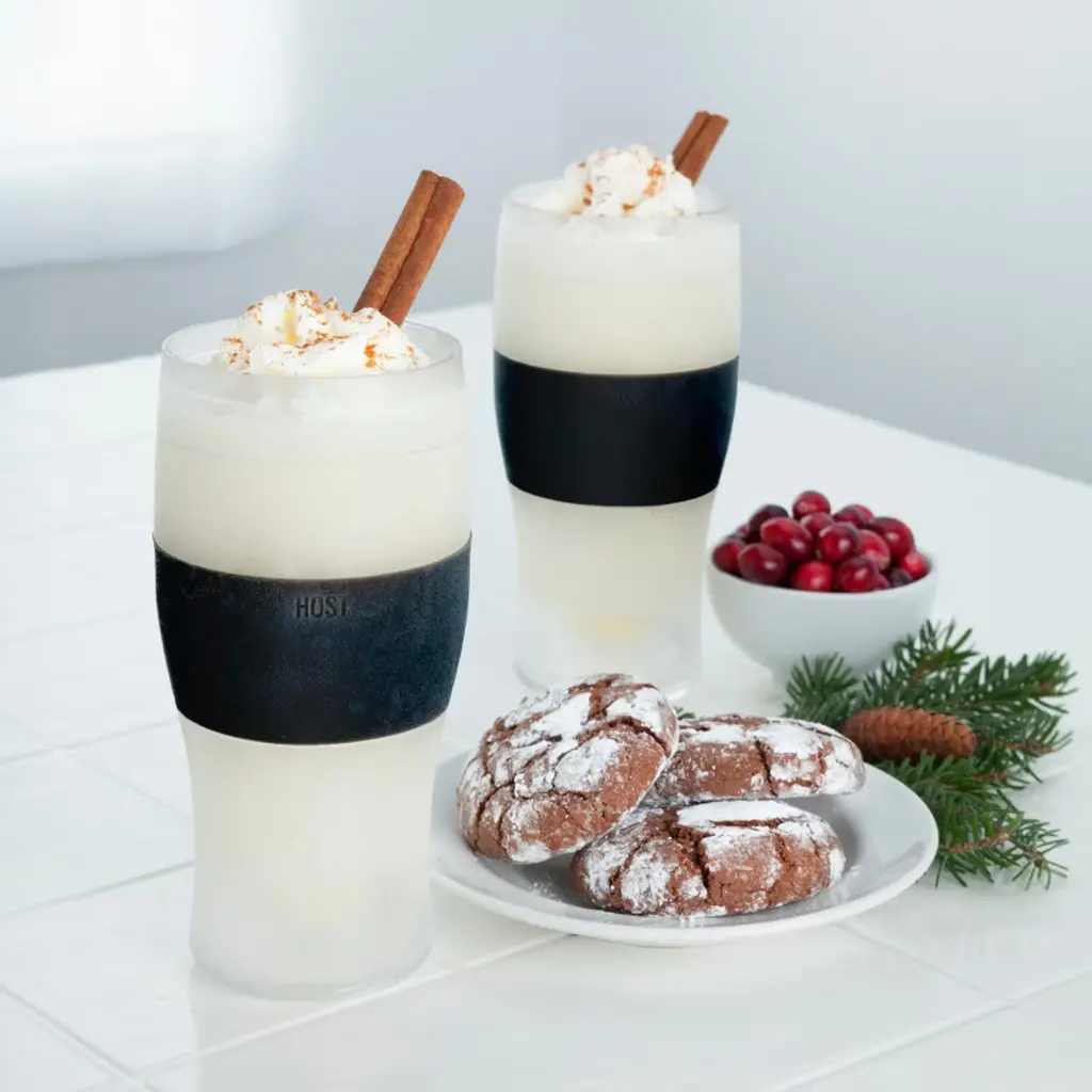 Host Freeze Beer Glasses, 16 Ounce Freezer Gel Chiller Double Wall Plastic Frozen Pint Glass, Set Of 2, Black