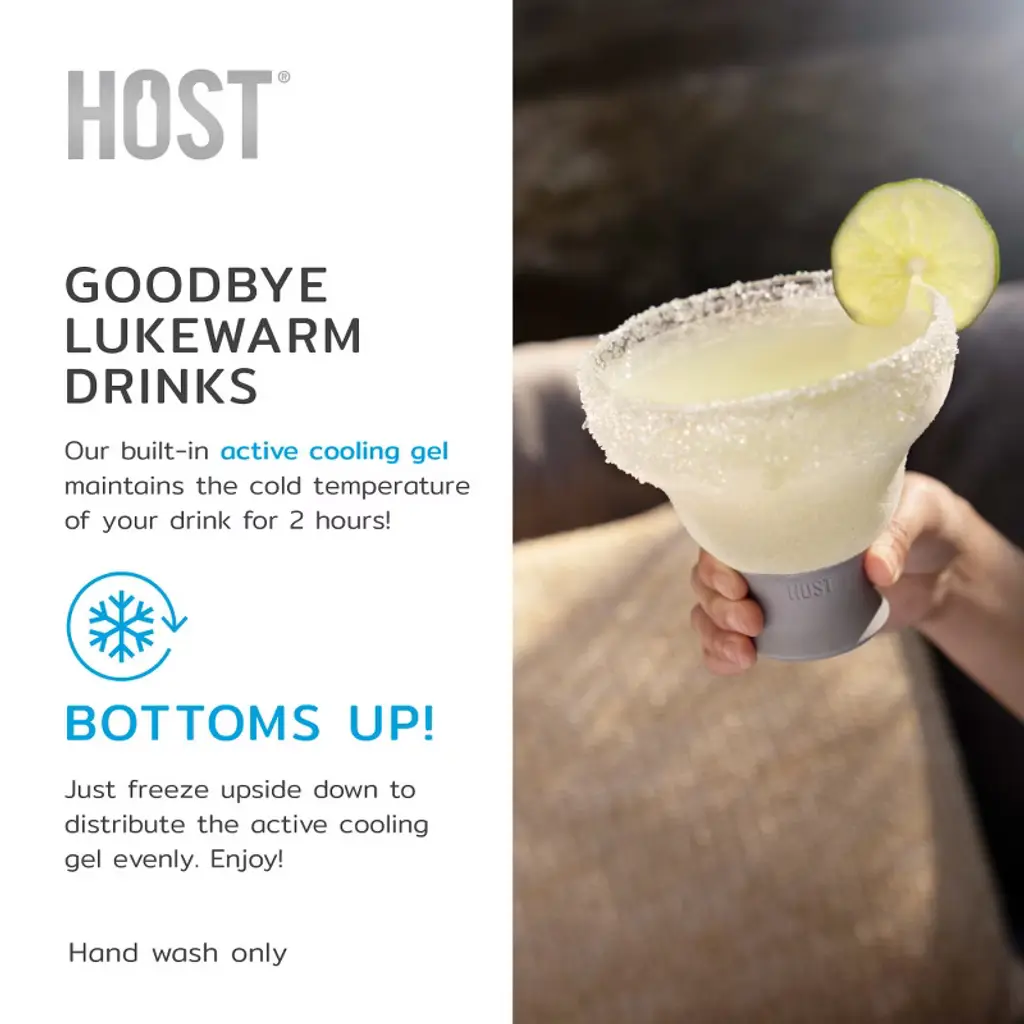 Keep your margaritas colder for much longer with this margarita glass cup drinking set. These cool cocktail glasses are shaped just like classic stemless margarita glasses, but stick them in the freezer and you’ve got a frozen cup that’ll keep your cocktails nicely chilled! Inspired by our popular Host Wine Freeze Cooling Cups, we created a margarita set from real glass following the same design as our frozen wine glass that’s the perfect addition to any kitchen barware set. Freeze the active cooling gel in these double walled tumblers to keep your drinks chilled for 2 hours. These fun drinking glasses are great mix drink glasses—just add margarita salt and cocktail mix for the perfect margarita gift set.